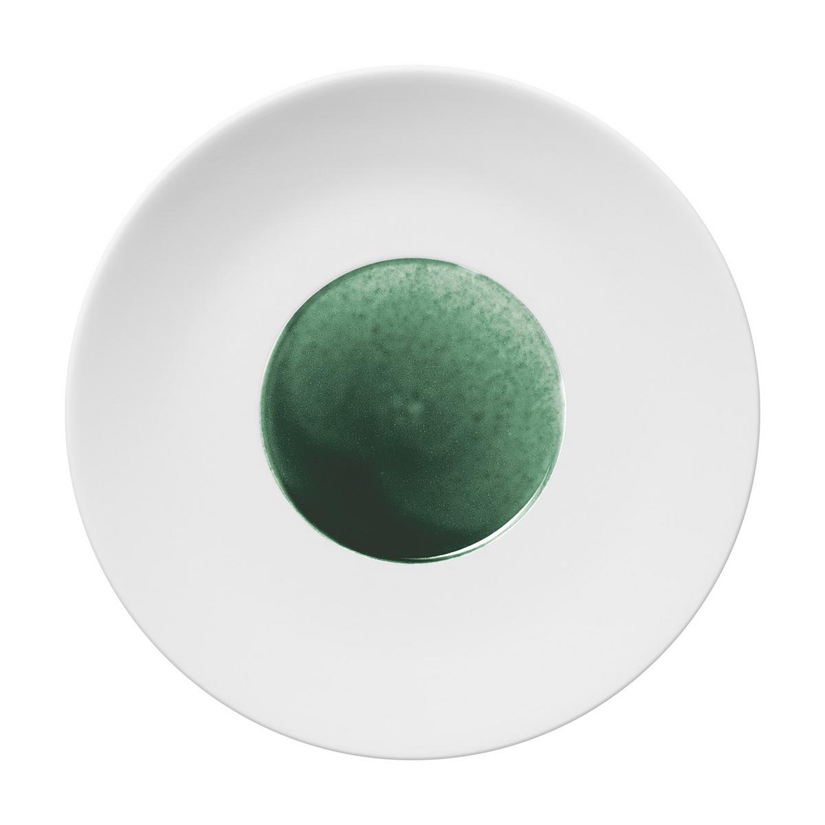 The rims of the "Emerald" plates are made of smoothed silky matt, unglazed bisque porcelain and form a pleasant contrast to the iridescent green colour glaze inside the plates. The lively high-fire glaze alternates from juicy leaf green to an intense emerald color.