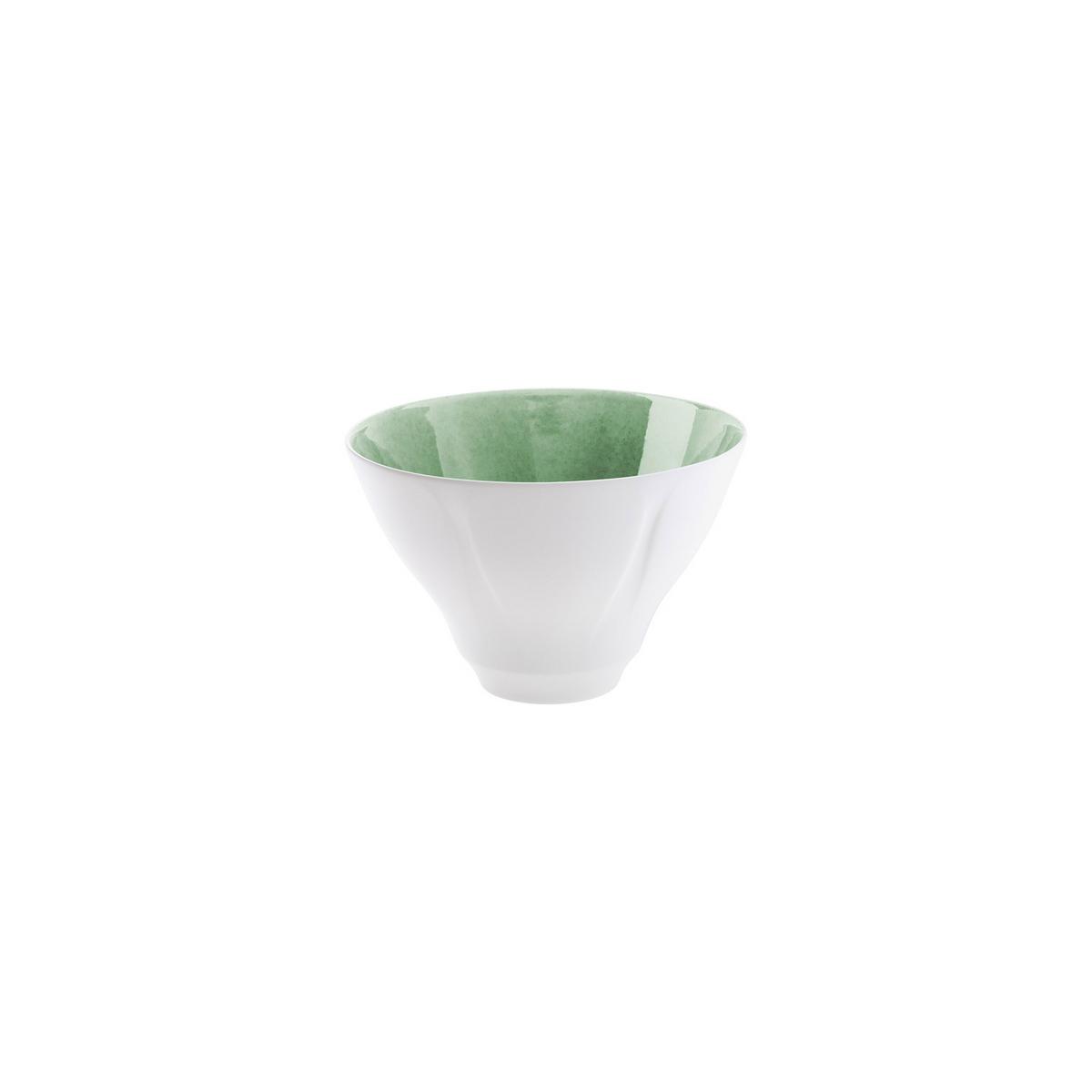 The rims of the "Emerald" plates are made of smoothed silky matt, unglazed bisque porcelain and form a pleasant contrast to the iridescent green colour glaze inside the plates. The lively high-fire glaze alternates from juicy leaf green to an intense emerald color.