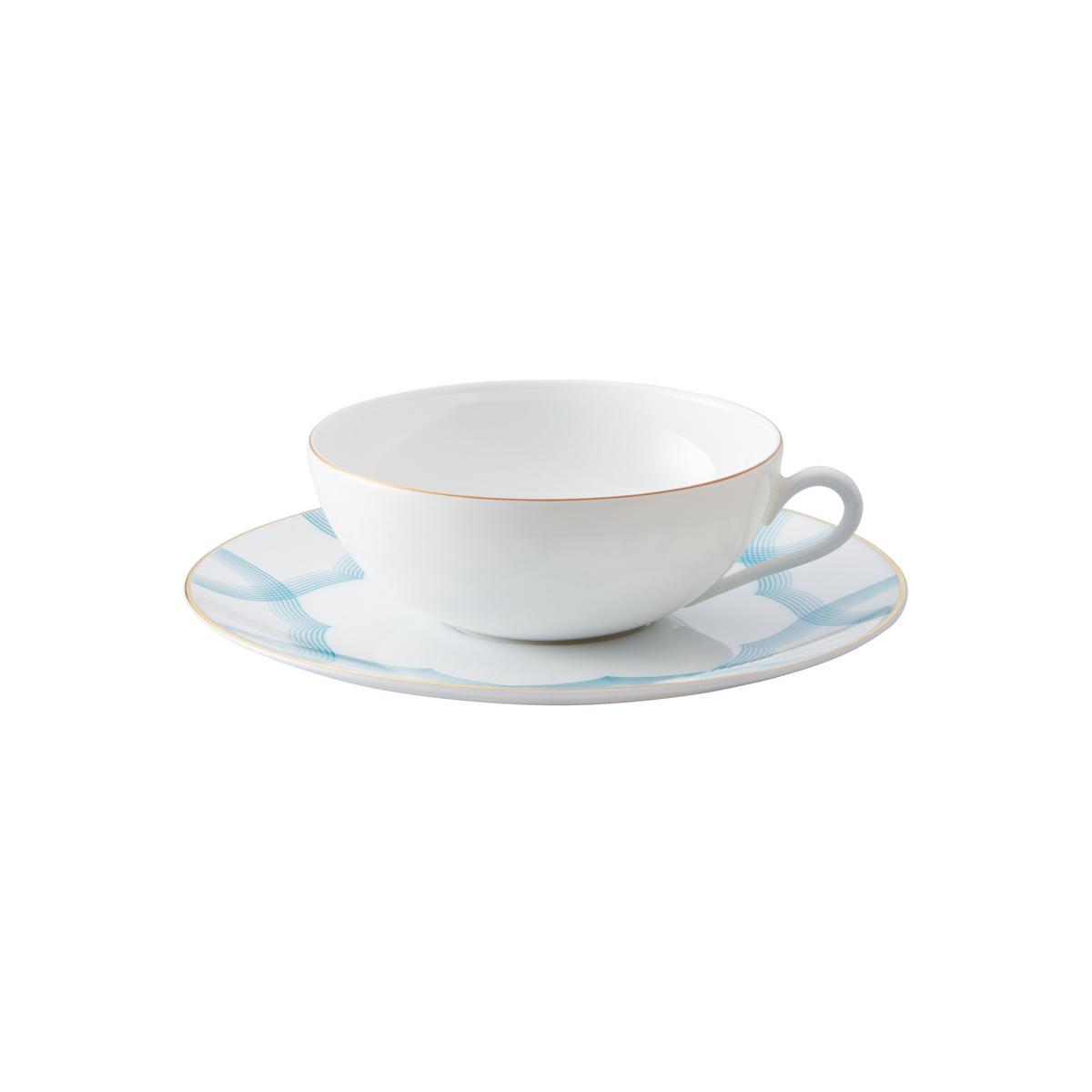 Based on the typical scalloped decor of the 18th century Raynaud developed the graphic and modern "Aura" dinner service. The curved lines decorate the fine Limoges porcelain plates and cups in a different way.