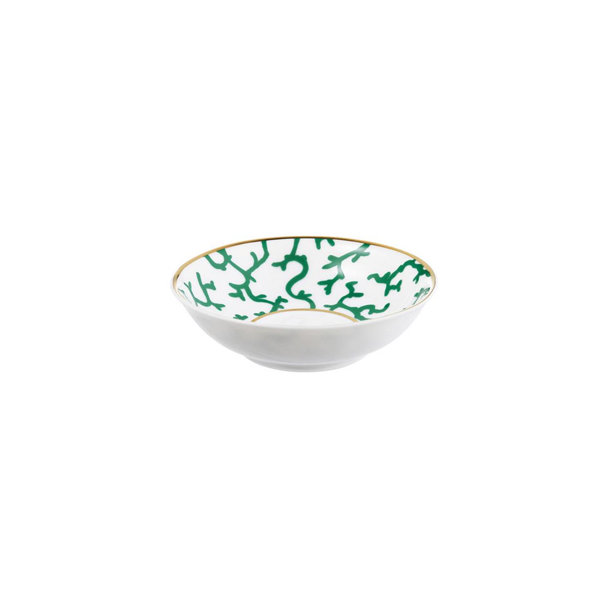 The emerald green color, which complements the original coral red collection ("Cristobal Coral") and the ultramarine blue version ("Cristobal Marine"), plunges un into the abyss and the mysterious sea pits. It is sometimes dense and deep on the coral handles of the cups or on the knobs of the teapots, sometimes soft, contrasting, nuanced and watercoloured on the plates decorated with coral motifs in harmonious shapes. Displayed in small touches on the table or staged in an opulent way, Cristobal composes, builds and invents infinitely with the elegance and generosity that characterize the talented decorator.