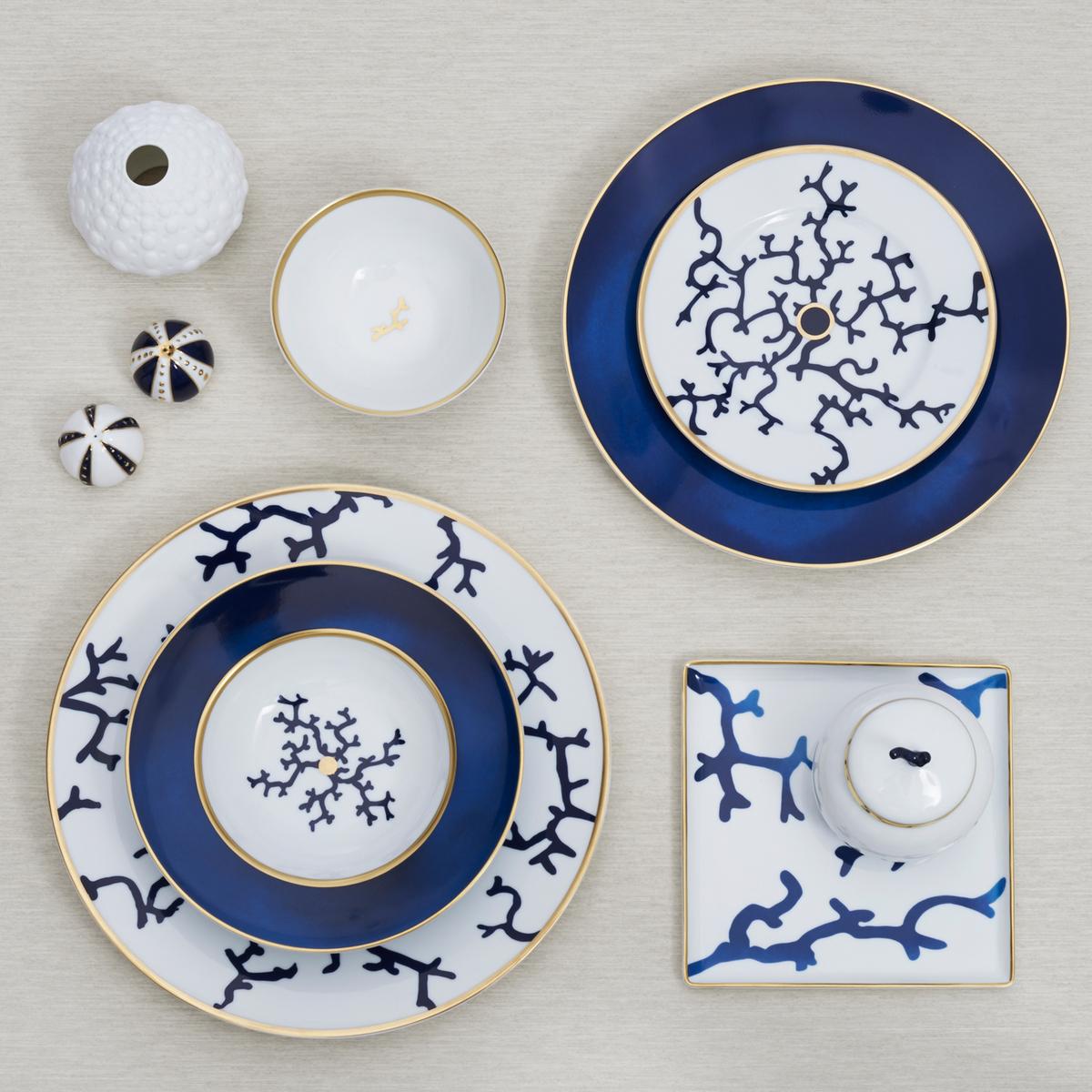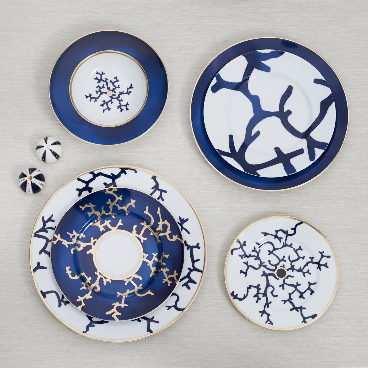"Cristobal Marine" from Raynaud, with its organic shapes and intensive colours, will enhance and enliven your dining table. These variations of the popular, decorative Raynaud tableware "Cristobal Coral" celebrate Alberto Pintos’ famous coral branch shapes in a further transformation. In a variety of combinations of marine blue, intensive gold, and refreshing white, Cristobal Marine develops Pinitos’ delicate coral structures. The fascinating effect on the plates, cups and dishes of the "Cristobal Marine" porcelain from Raynaud has made this dinner service into a new classic.