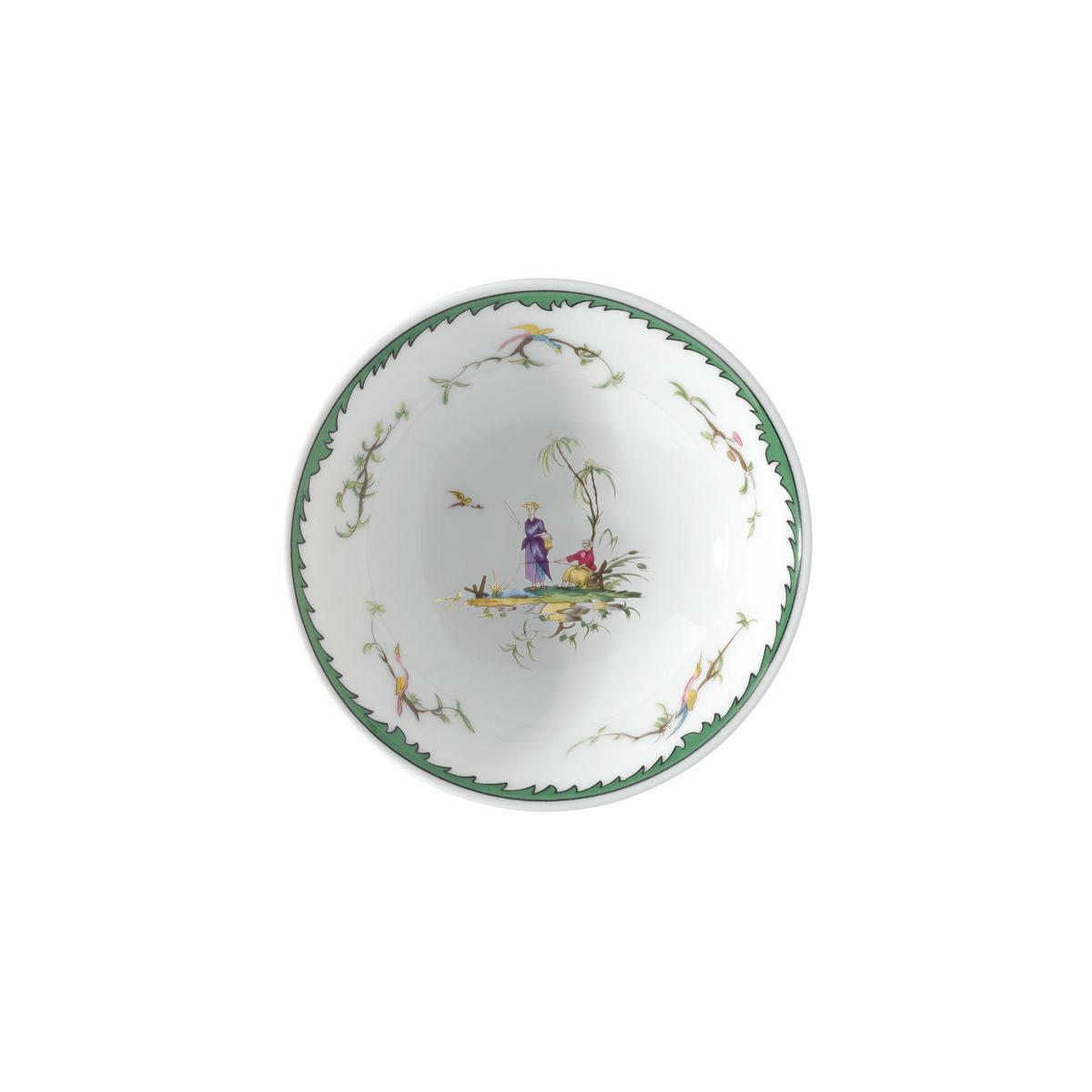 Inspired by the paintings of the Rococo painter Jean Pillement (1728-1808), the porcelain manufacturer Raynaud created this striking "Longjiang" dinnerware. Each piece of this fine Limoges porcelain service is handcrafted. It comprises six different designs, all painted in powerful colours and depicting Chinese country scenes from the eighteenth century. The shapes are joyfully nostalgic.