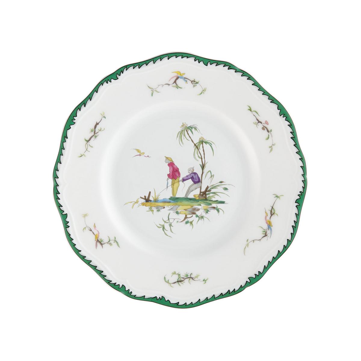"Longjiang" by Raynaud has replaced "Si Kiang" (same design on another shape). The dinner service is framed with a green rim, but the rim, which does not bear the wicker structure, is slightly less ostentatious than its predecessor.