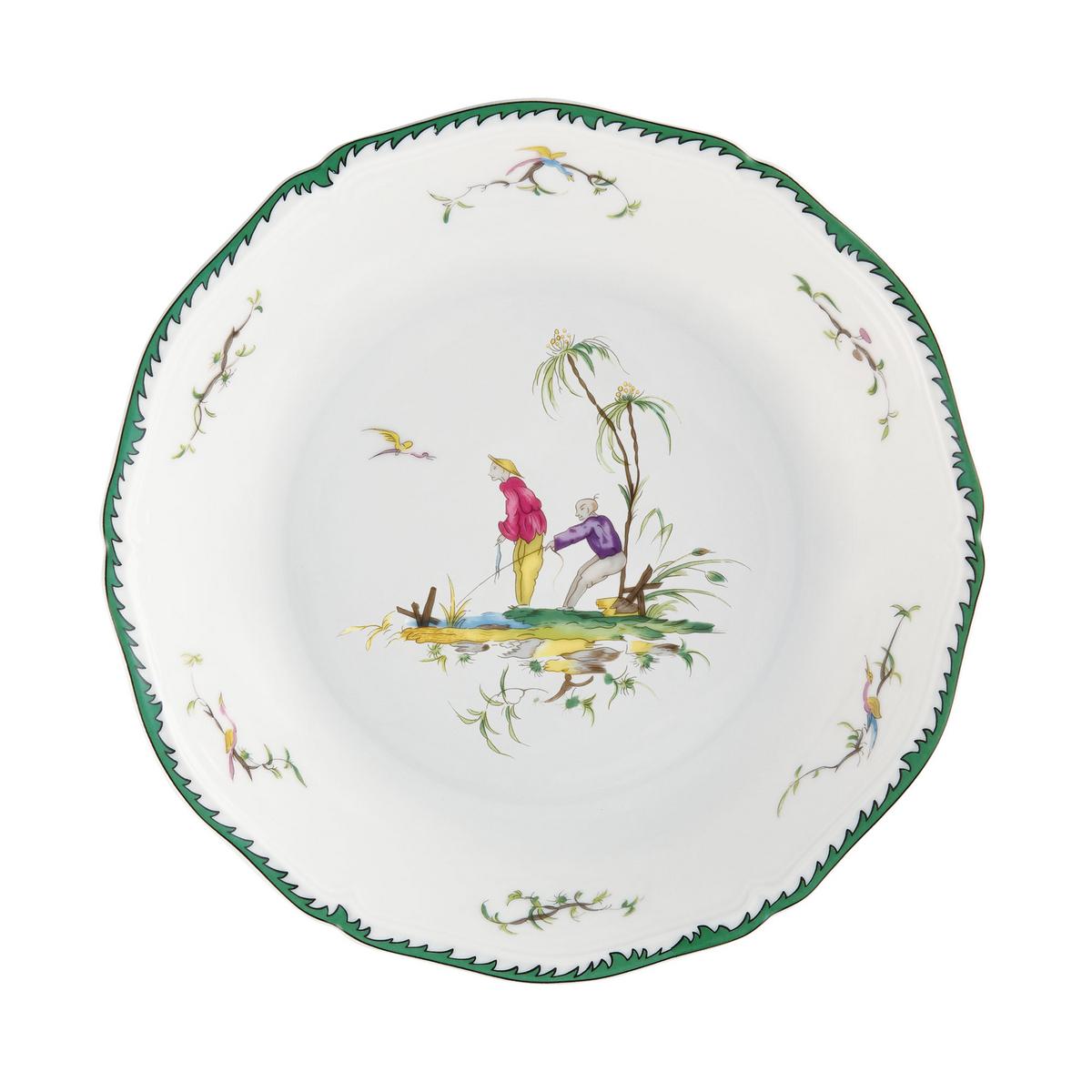 Inspired by the paintings of the Rococo painter Jean Pillement (1728-1808), the porcelain manufacturer Raynaud created this striking "Longjiang" dinnerware. Each piece of this fine Limoges porcelain service is handcrafted. It comprises six different designs, all painted in powerful colours and depicting Chinese country scenes from the eighteenth century. The shapes are joyfully nostalgic.