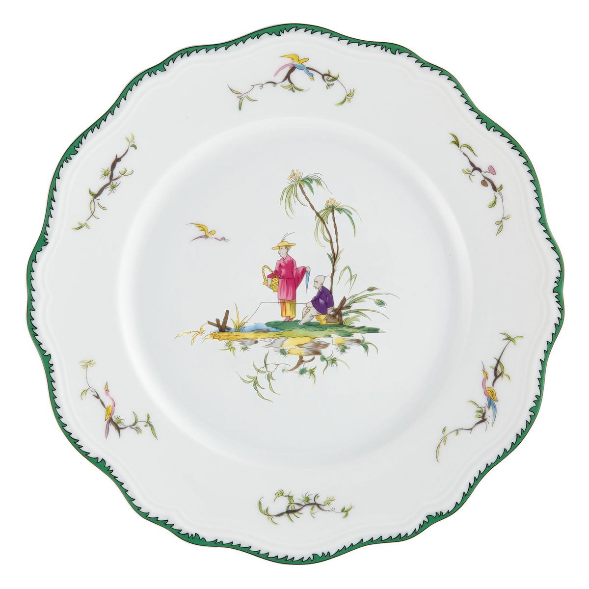 "Longjiang" by Raynaud has replaced "Si Kiang" (same design on another shape). The dinner service is framed with a green rim, but the rim, which does not bear the wicker structure, is slightly less ostentatious than its predecessor.