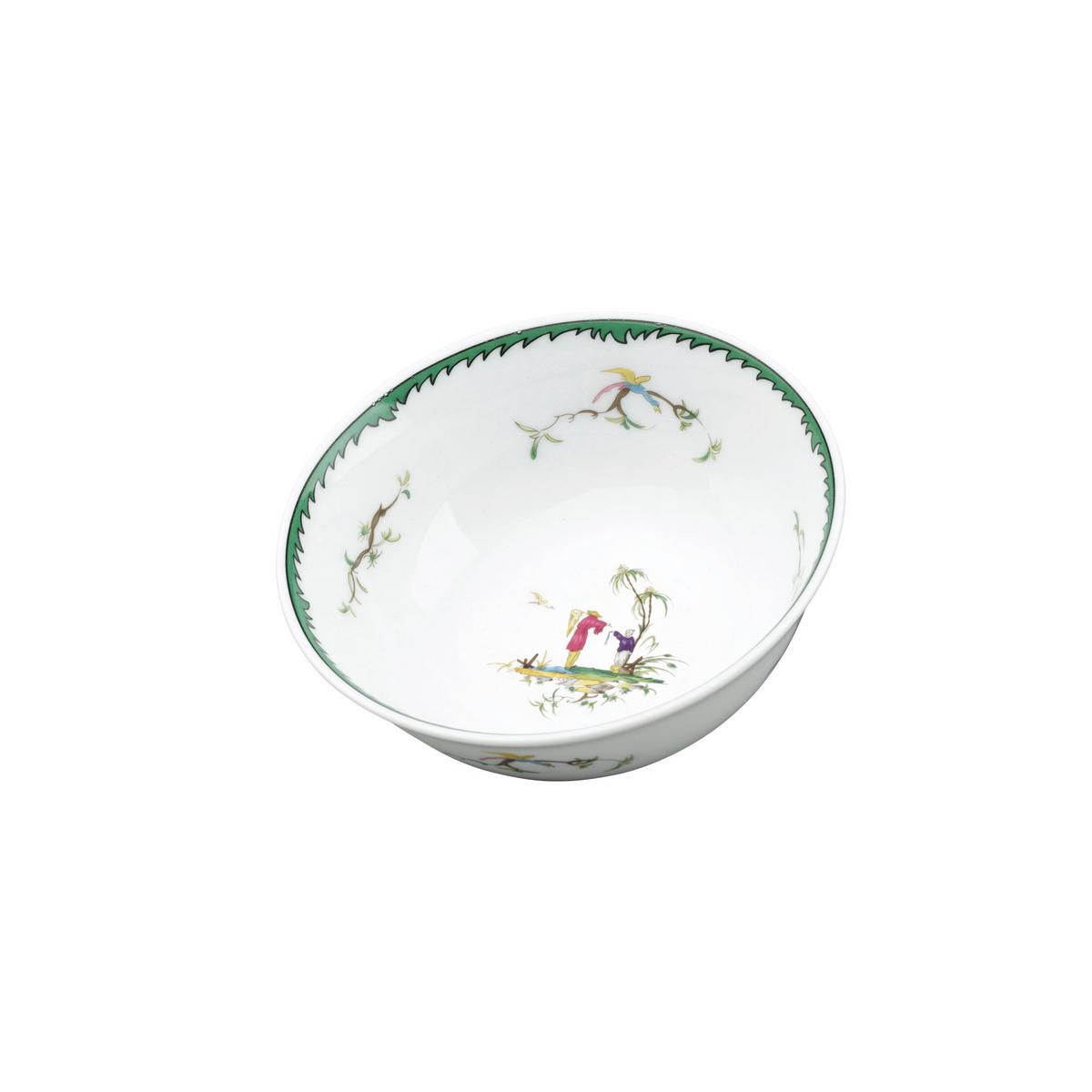 "Longjiang" by Raynaud has replaced "Si Kiang" (same design on another shape). The dinner service is framed with a green rim, but the rim, which does not bear the wicker structure, is slightly less ostentatious than its predecessor.