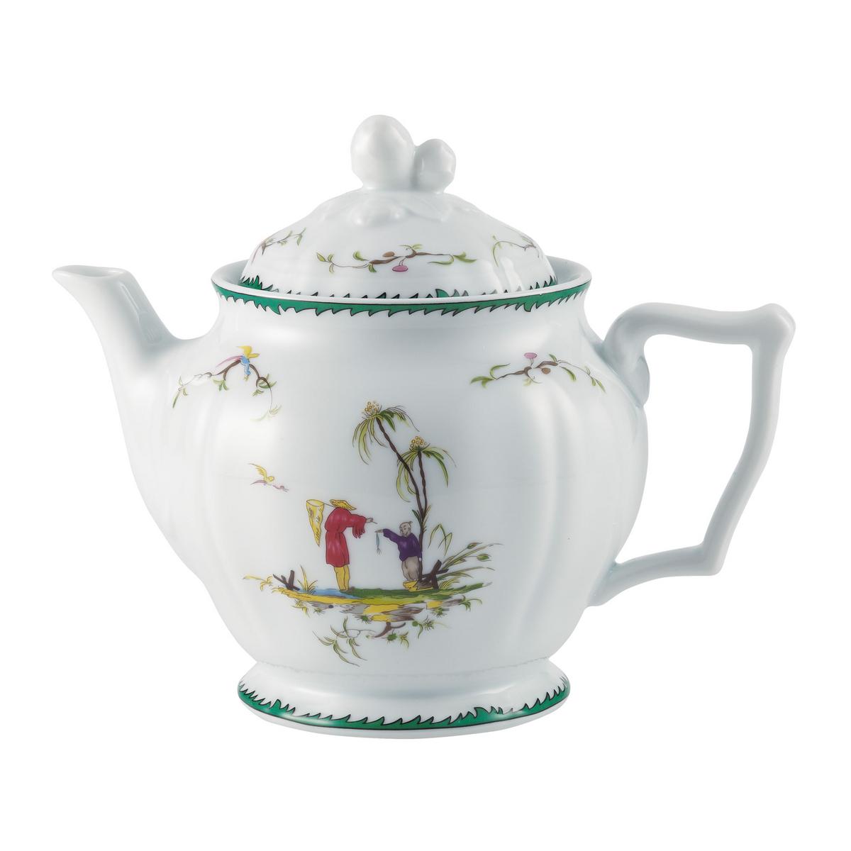 Inspired by the paintings of the Rococo painter Jean Pillement (1728-1808), the porcelain manufacturer Raynaud created this striking "Longjiang" dinnerware. Each piece of this fine Limoges porcelain service is handcrafted. It comprises six different designs, all painted in powerful colours and depicting Chinese country scenes from the eighteenth century. The shapes are joyfully nostalgic.