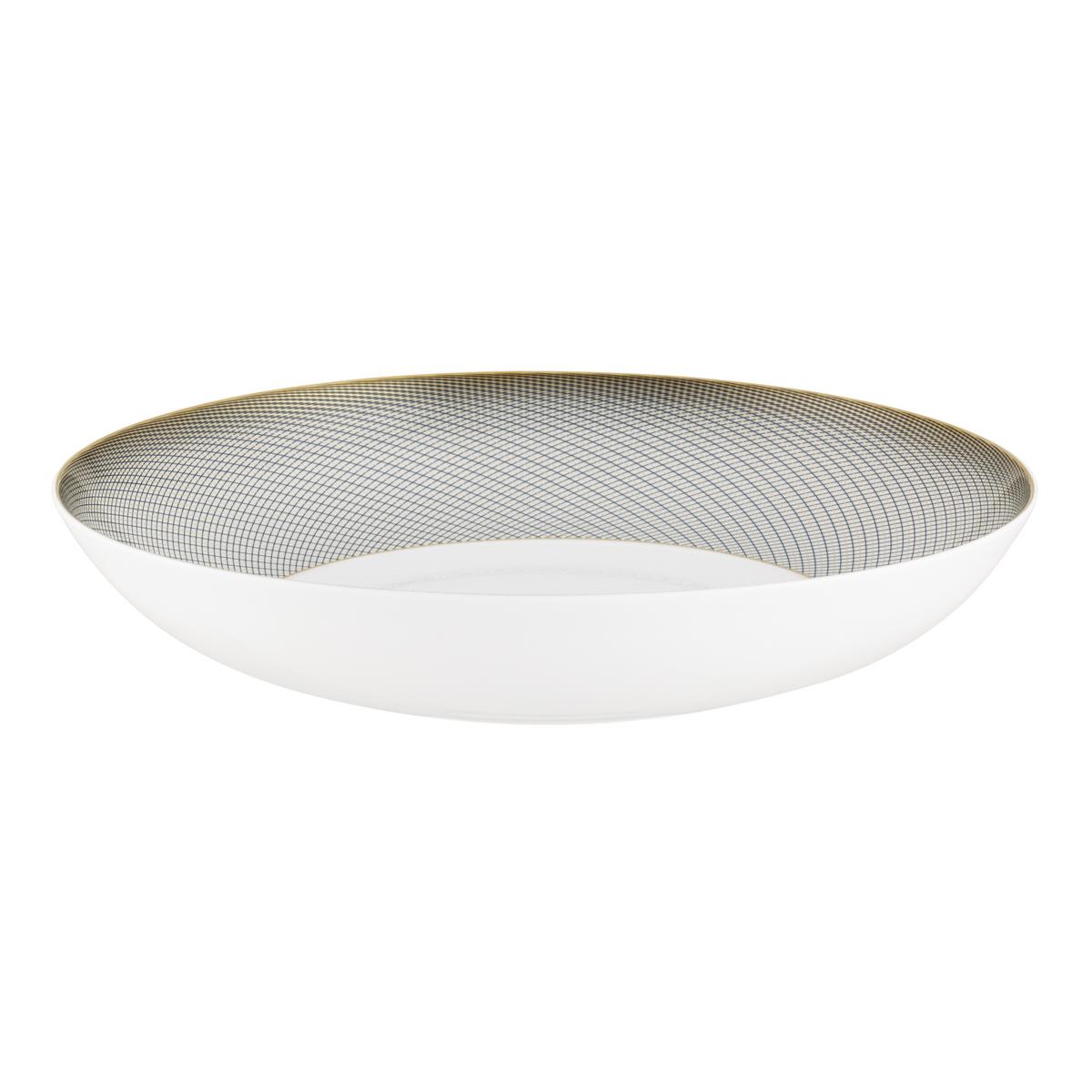 "Oskar" by Raynaud enchants the senses with its grandiose geometric design ‒ and there is a special appeal to the visual senses. Very fine lines in black and gold adorn Raynaud’s white Limoges porcelain. Upon examining each "Oskar" plate more carefully, you will notice that the geometric pattern varies slightly each time. That is exactly what is wanted from the designer Mariela Schwarz Montiel who has already conceived a number of dinner services for Raynaud. Most of the plates have a golden fixed point in the middle to which the eye-catching line pattern gravitates.