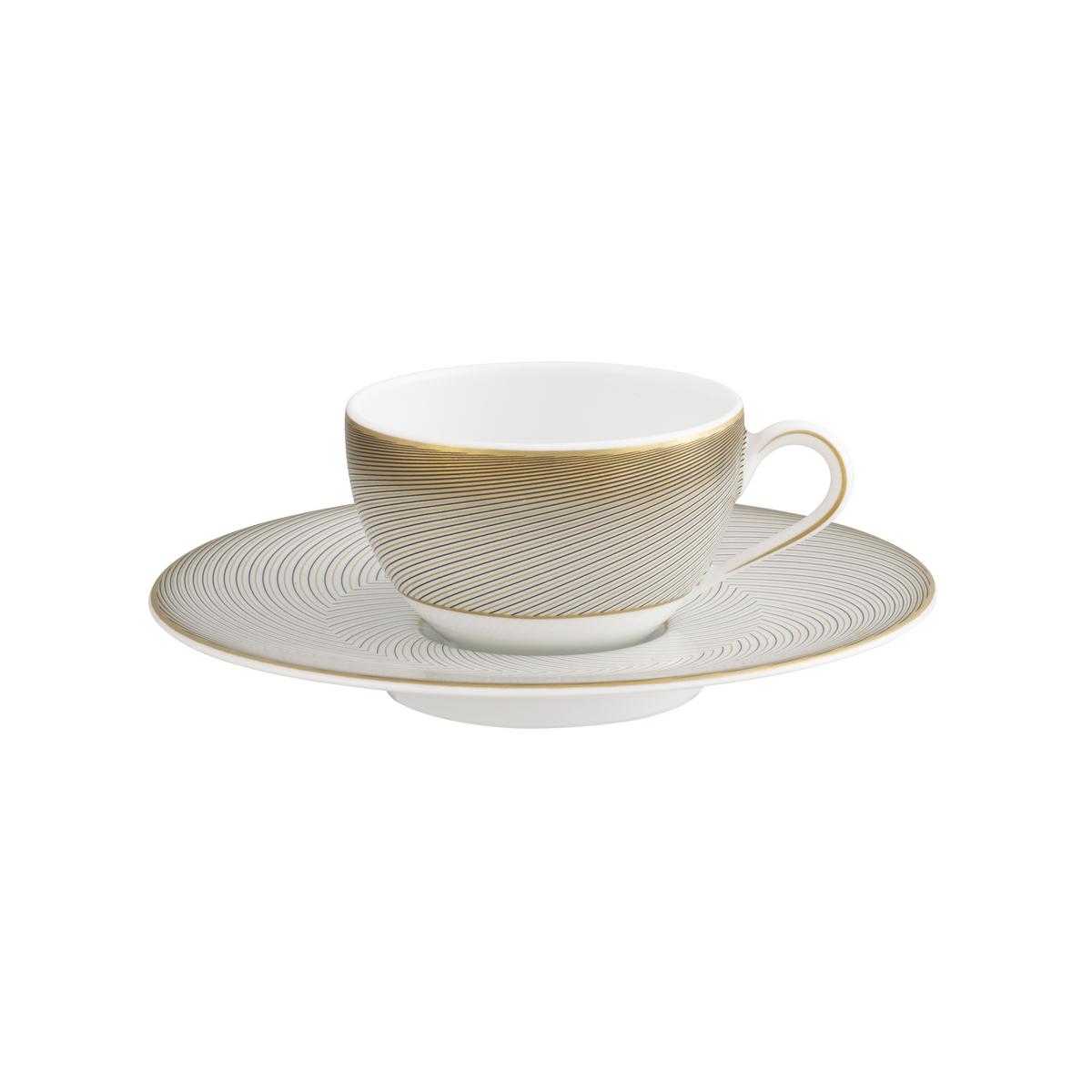 "Oskar" by Raynaud enchants the senses with its grandiose geometric design ‒ and there is a special appeal to the visual senses. Very fine lines in black and gold adorn Raynaud’s white Limoges porcelain. Upon examining each "Oskar" plate more carefully, you will notice that the geometric pattern varies slightly each time. That is exactly what is wanted from the designer Mariela Schwarz Montiel who has already conceived a number of dinner services for Raynaud. Most of the plates have a golden fixed point in the middle to which the eye-catching line pattern gravitates.