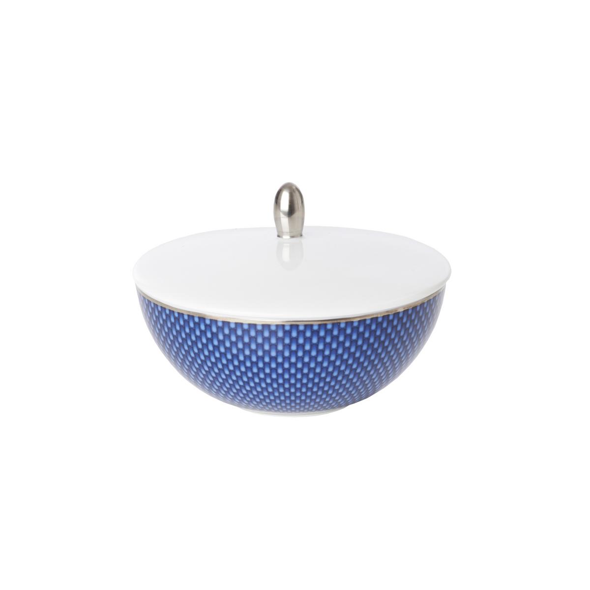 Trendsetters and fans of the colour blue will be delighted by the "Trésor Bleu" Limoges porcelain dinner service by Raynaud. Chic, elegant and full of charm best describes the appearance of "Trésor Bleu" by French porcelain manufacturer Raynaud. Deep blue hues are combined with elegant platinum. Finely designed braid and honeycomb patterns adorn the bright white Limoges porcelain.