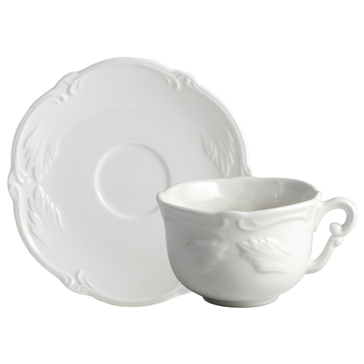 The "Rocaille" dinnerware from the Fayencerie de Gien is a romantic interpretation of the country house style that offers an impressive interplay of relief motifs and artistically curved handles. The original "Rocaille" design dates back to the eighteenth century. Faience is a fine, porous earthenware which is tin-glazed and then fired repeatedly.