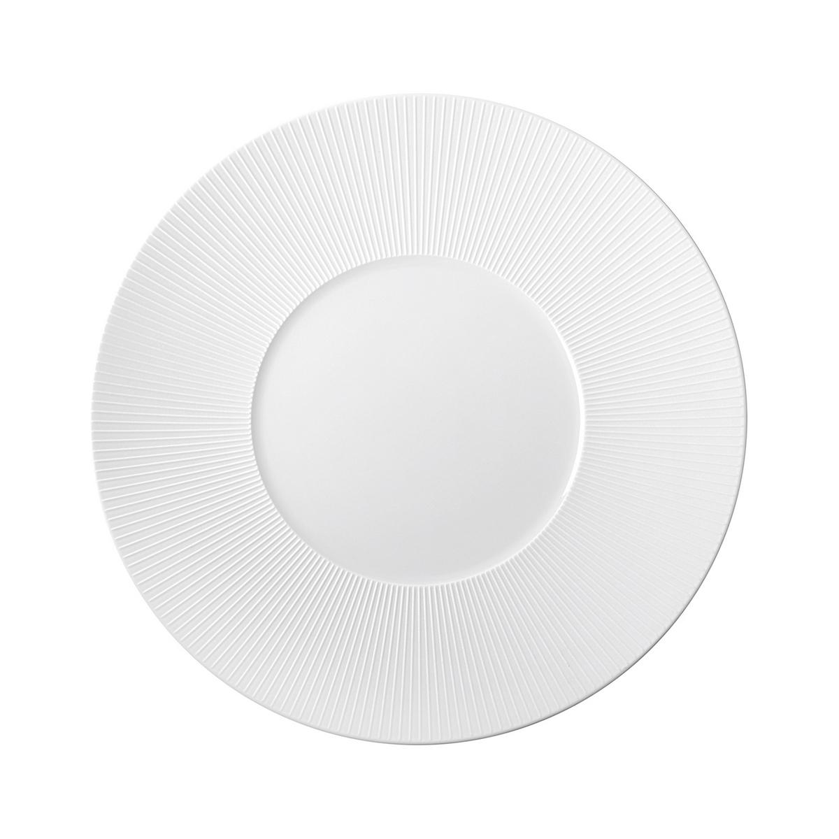 Refined porcelain with charisma - The "Bolero White" dinnerware by J.L Coquet has a striking presence and appearance despite its simple shapes. Fine radiant engravings are characteristic of the collection made of the finest Limoges porcelain. The special surface structure of "Bolero White" is also a haptic experience. The satin-finished plate rims contrast with the glazed plate mirrors. This contrast gives the elegant dinner service an organic warmth.