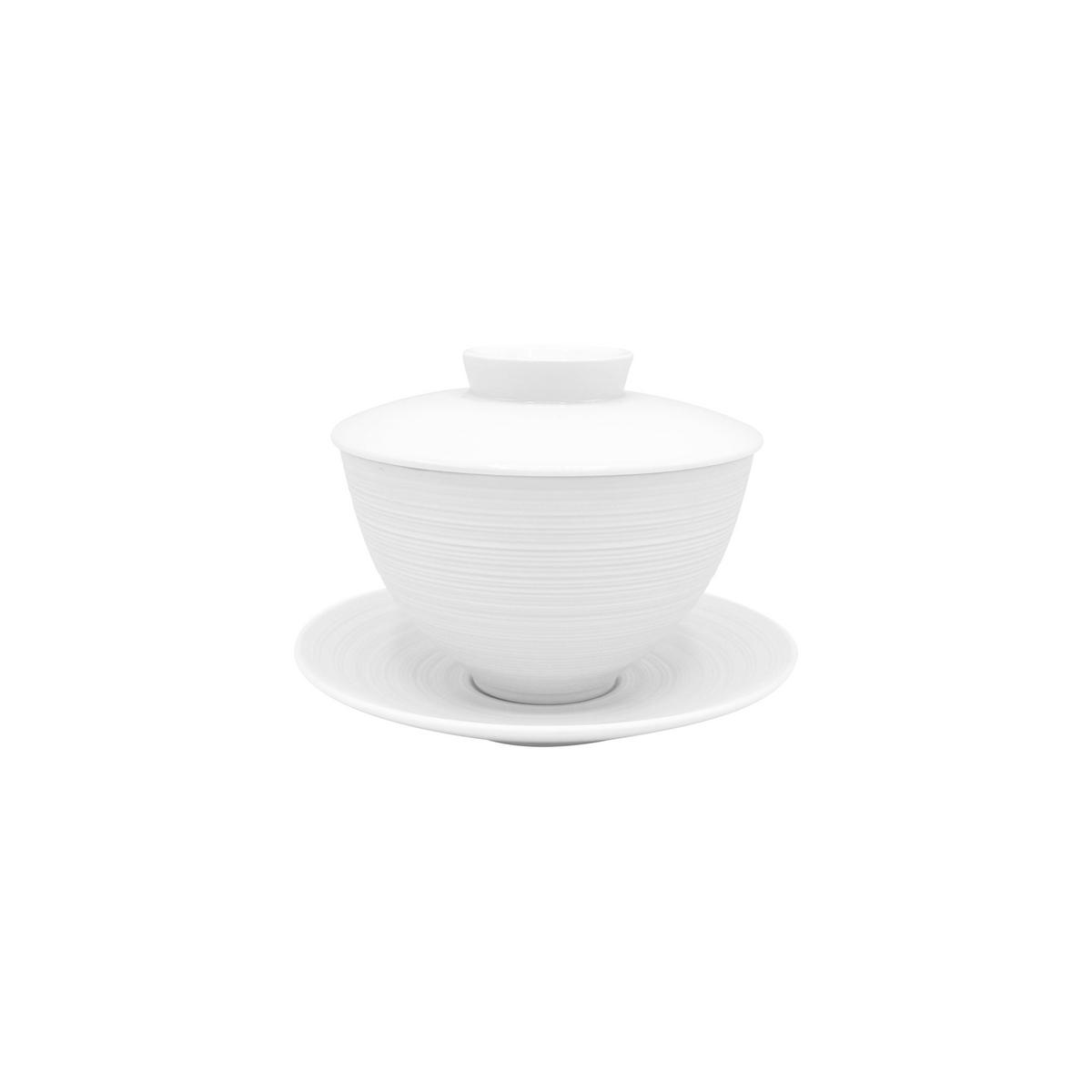 "Hémisphère White" chinese tea cup with lid and saucer by J.L Coquet