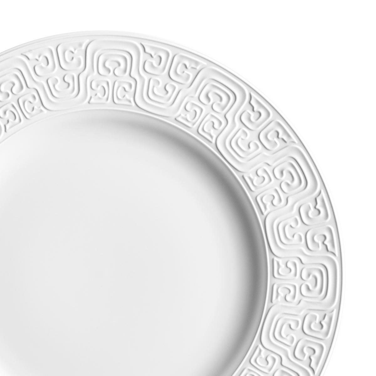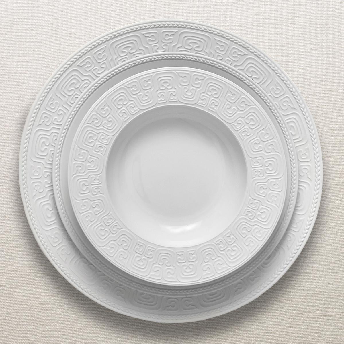 The fine porcelain of L’Objet’s "Han White" dinnerware is decorated with artistic relief structures. The inspiration for this breathtakingly beautiful "Han White" dinner service is the Chinese Han Dynasty. The opulent decorative elements around the rims of the plates and dishes go right back to this Chinese era which produced many magnificent artistic works.