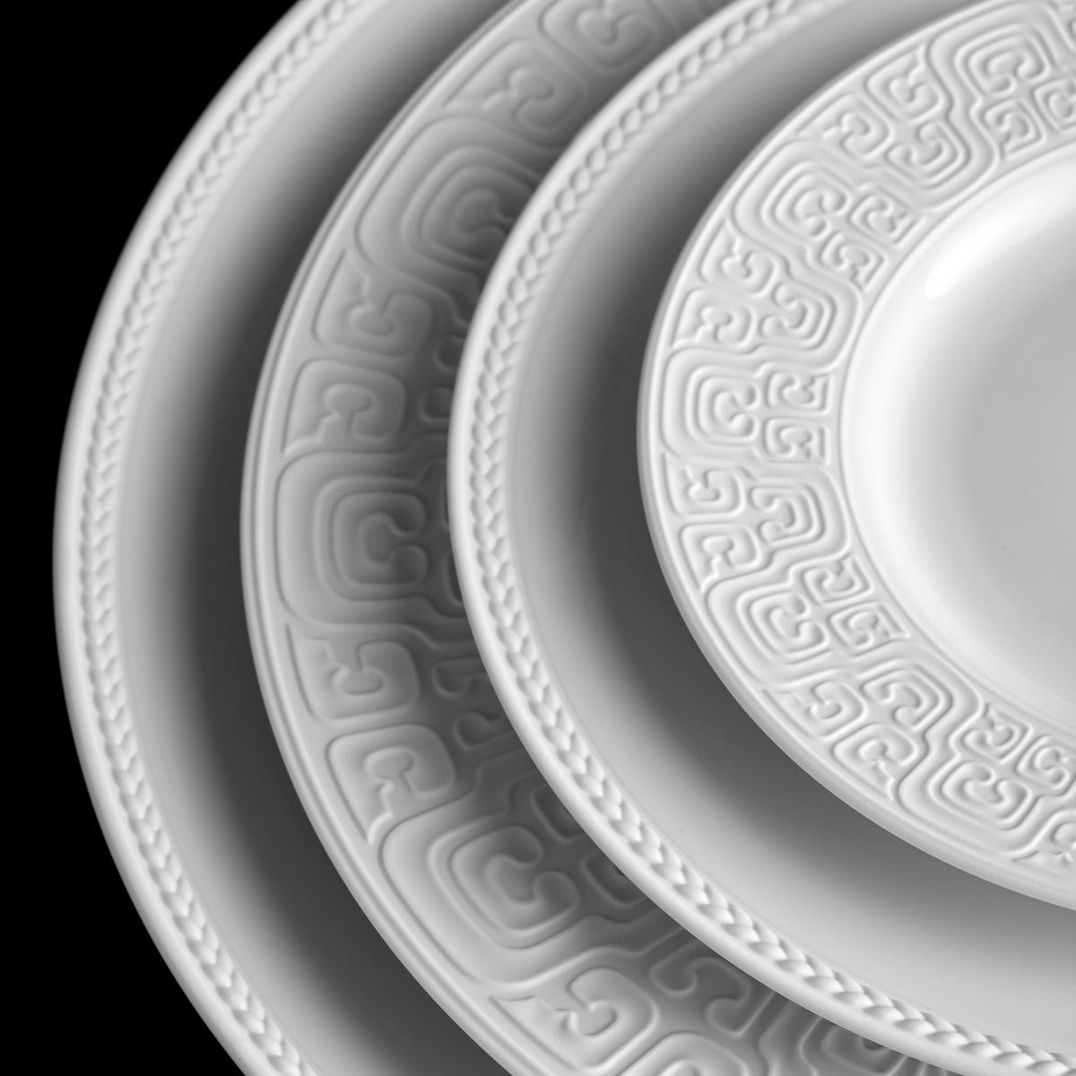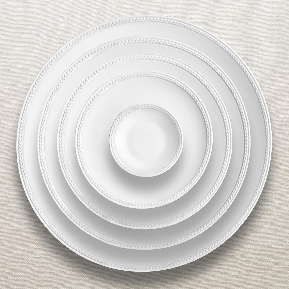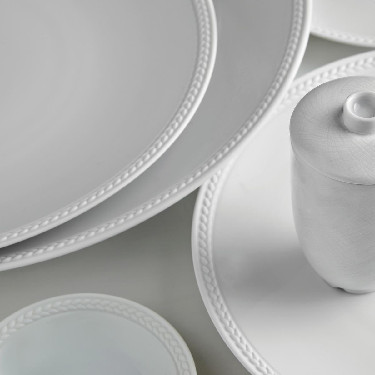 The decoration of the "Soie Tressée" dinner service from L’Objet takes advantage of an age-old design: the classic braid pattern (Soie Tressée = braided silk). L’Objet has successfully translated this ancient pattern into a modern, relief element of its "Soie Tressée" service. The beautiful braided pattern adorns the rims of this elegant porcelain service.