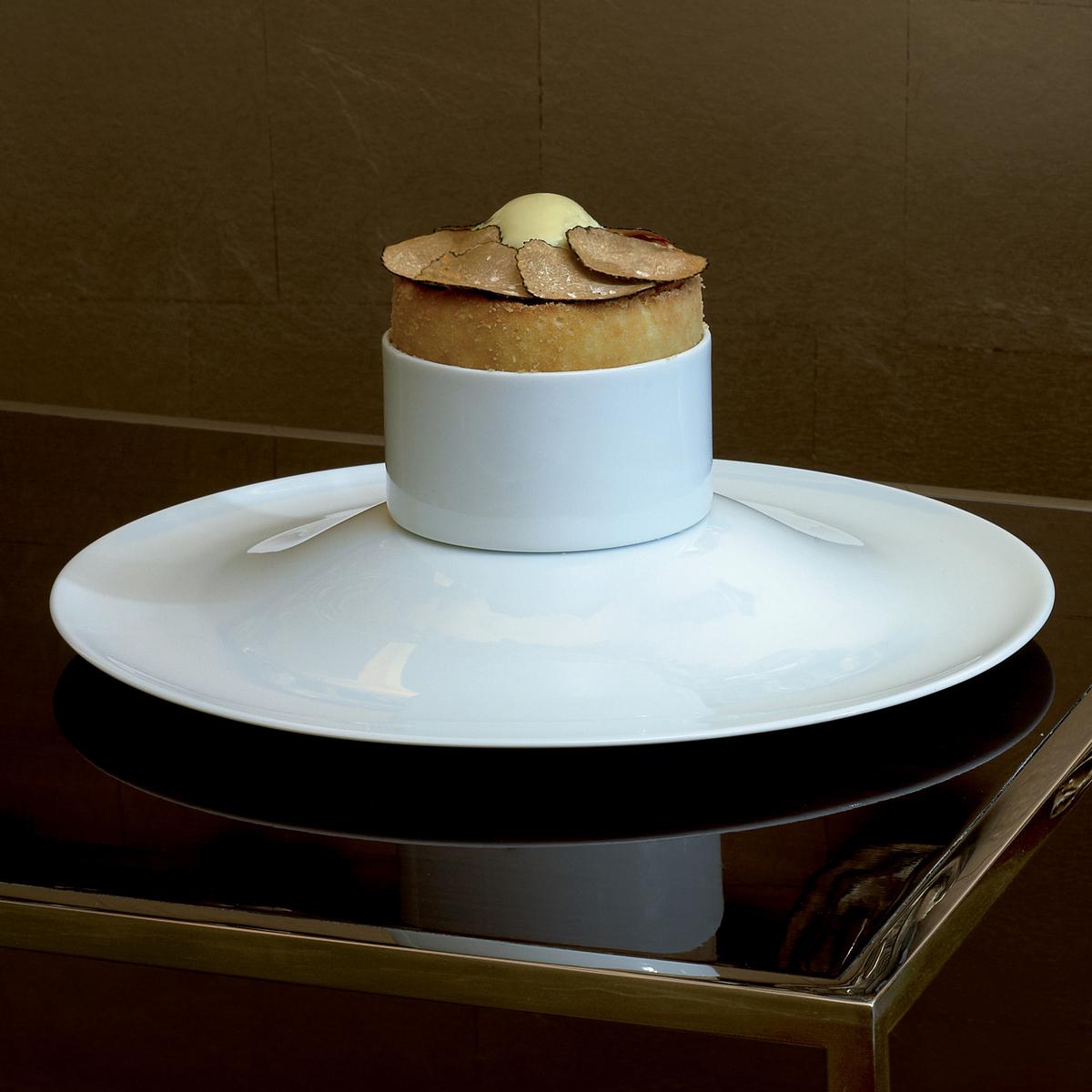 This novel set of "Lunes" crockery is the result of two years of collaboration between designers Catherine and Bruno Lefebvre and Anne-Sophie Pic, and the porcelain manufacturer Raynaud. It is an ambitious project to present daring new shapes on the dining room table. Indeed, for this 50-piece porcelain series, Raynaud had to develop completely new manufacturing techniques. The result, however, is an extraordinary set of tableware for impressive culinary arrangements.