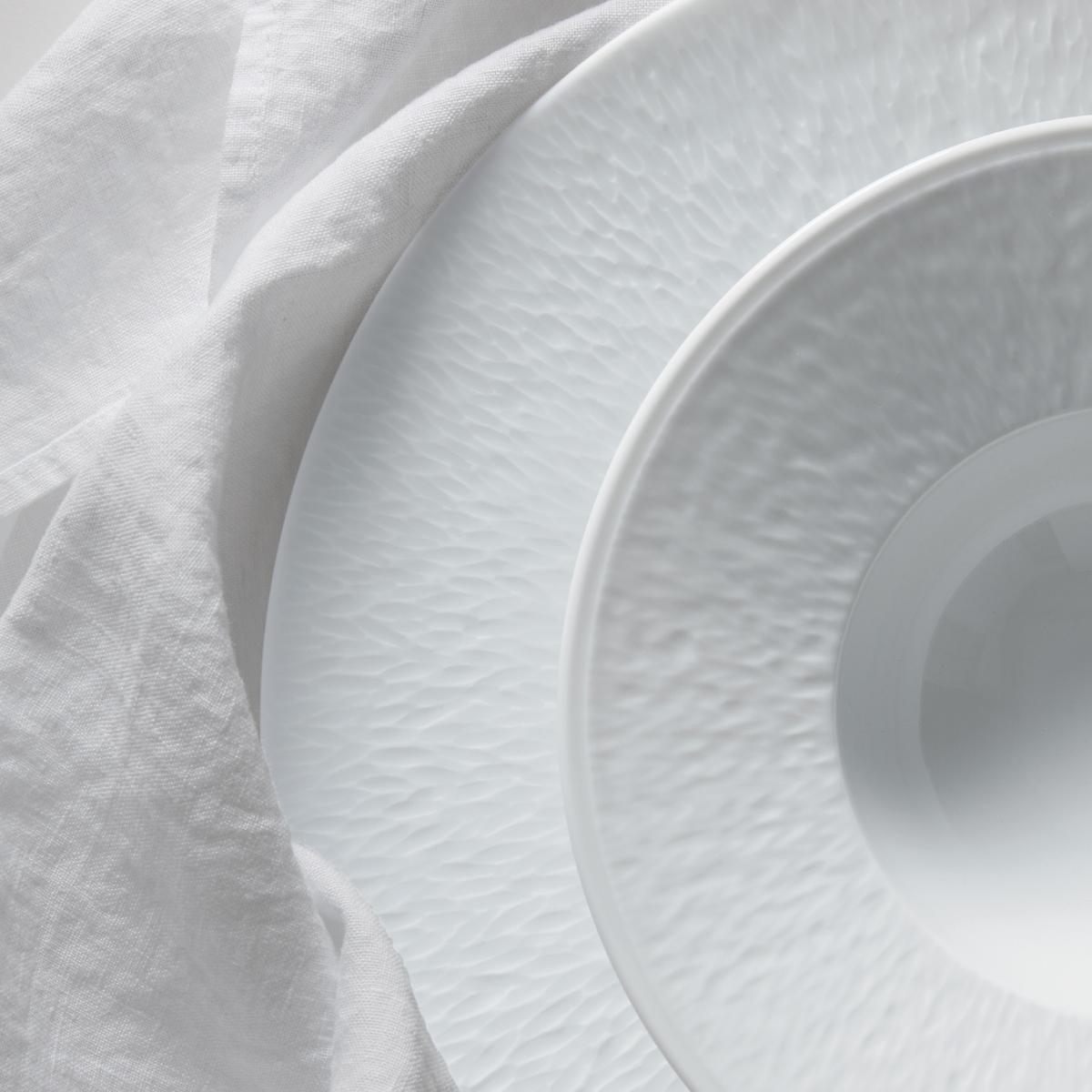 The "Minéral White" dinner service is made of the finest Limoges porcelain at the Raynaud manufactory in France. Traditional production processes are strictly observed here, thus ensuring the unique quality of the Raynaud products.