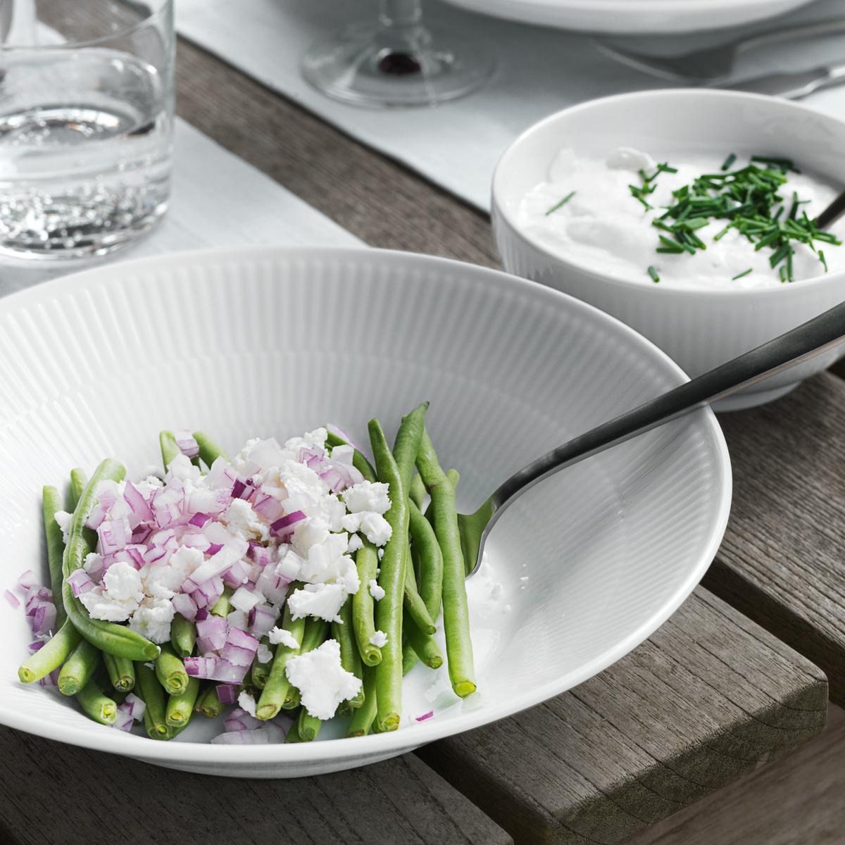 About 100 years after Royal Copenhagen was founded, the then artistic director of the Arnold Krog manufactory succeeded in creating "White Fluted", a masterpiece of porcelain craftsmanship. The ribbed surface is identical to that of the famous blue and white classic "Blue Fluted". "White Fluted" is also a wonderful extension and combination and the basis for "Blue Fluted" or the modern version "Blue Fluted Mega".