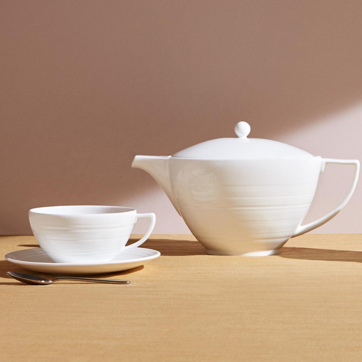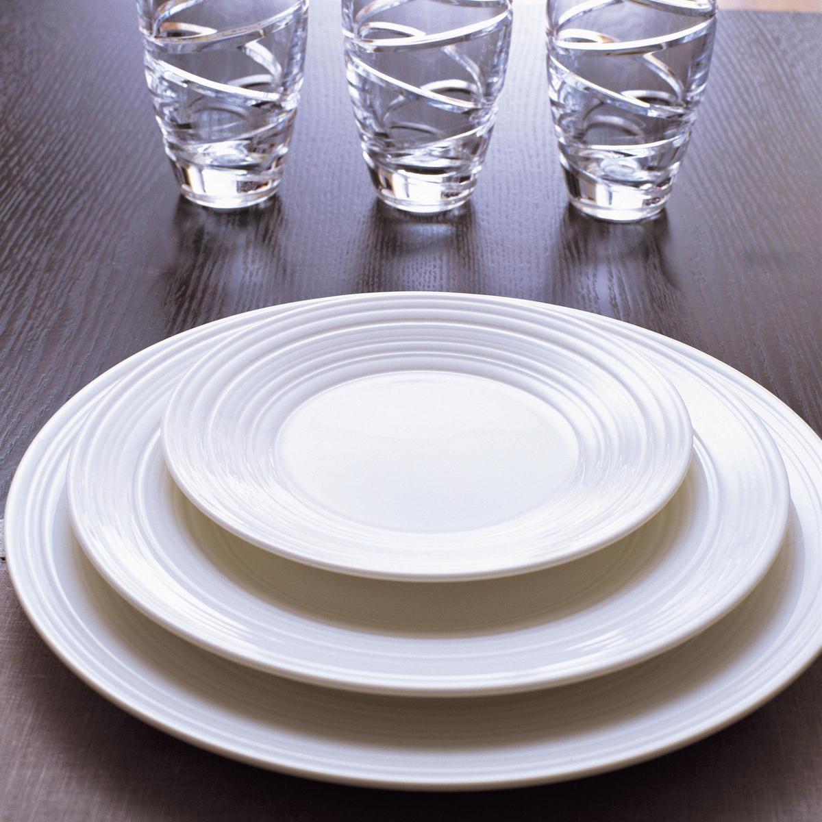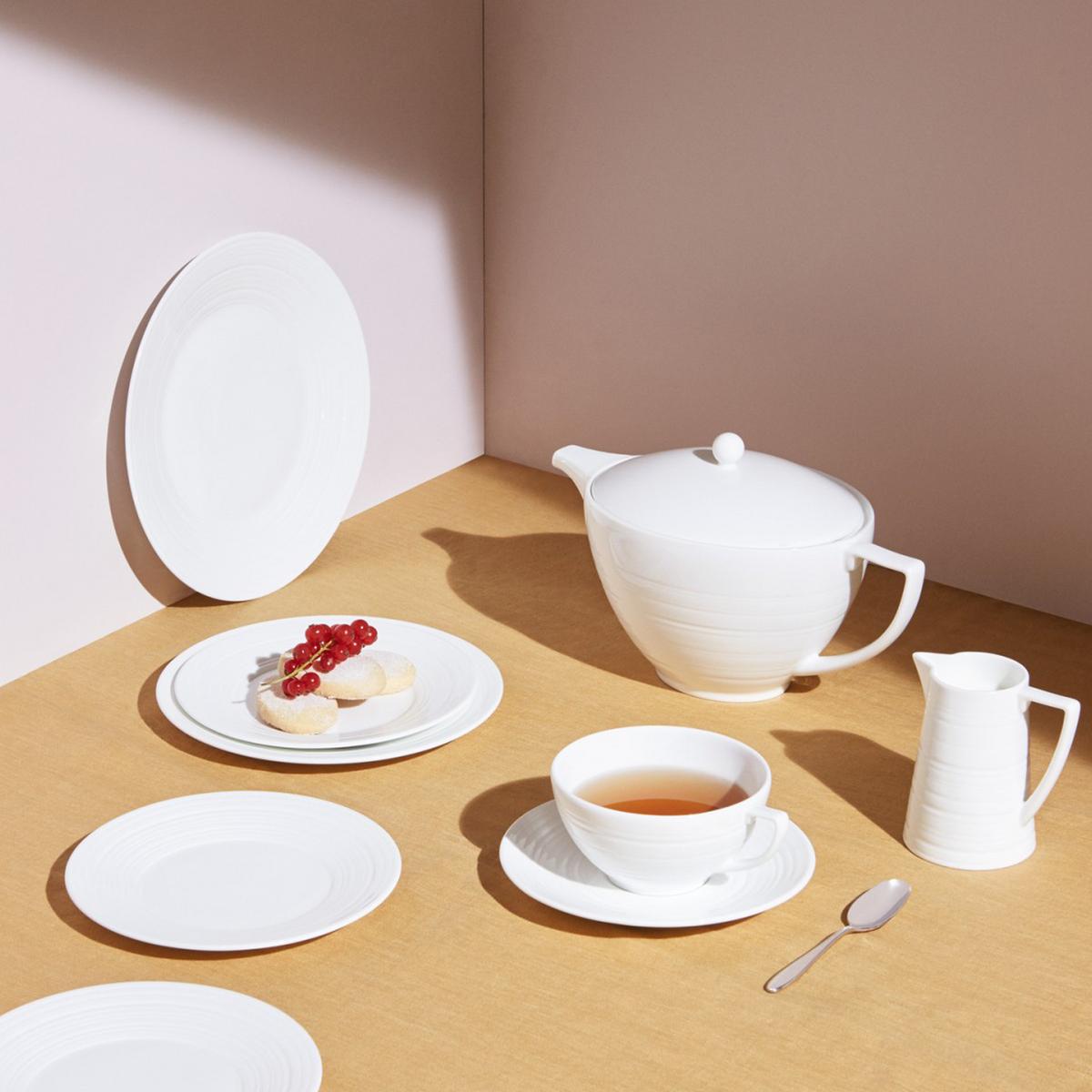 The English designer Jasper Conran created the "Jasper Conran White Strata" dinnerware for Wedgwood. The British designer Jasper Conran is considered to be one of the leading artists of minimalist clarity. His timelessly elegant shapes are outstandingly well suited to the design philosophy of the traditional porcelain manufacturer Wedgwood.
