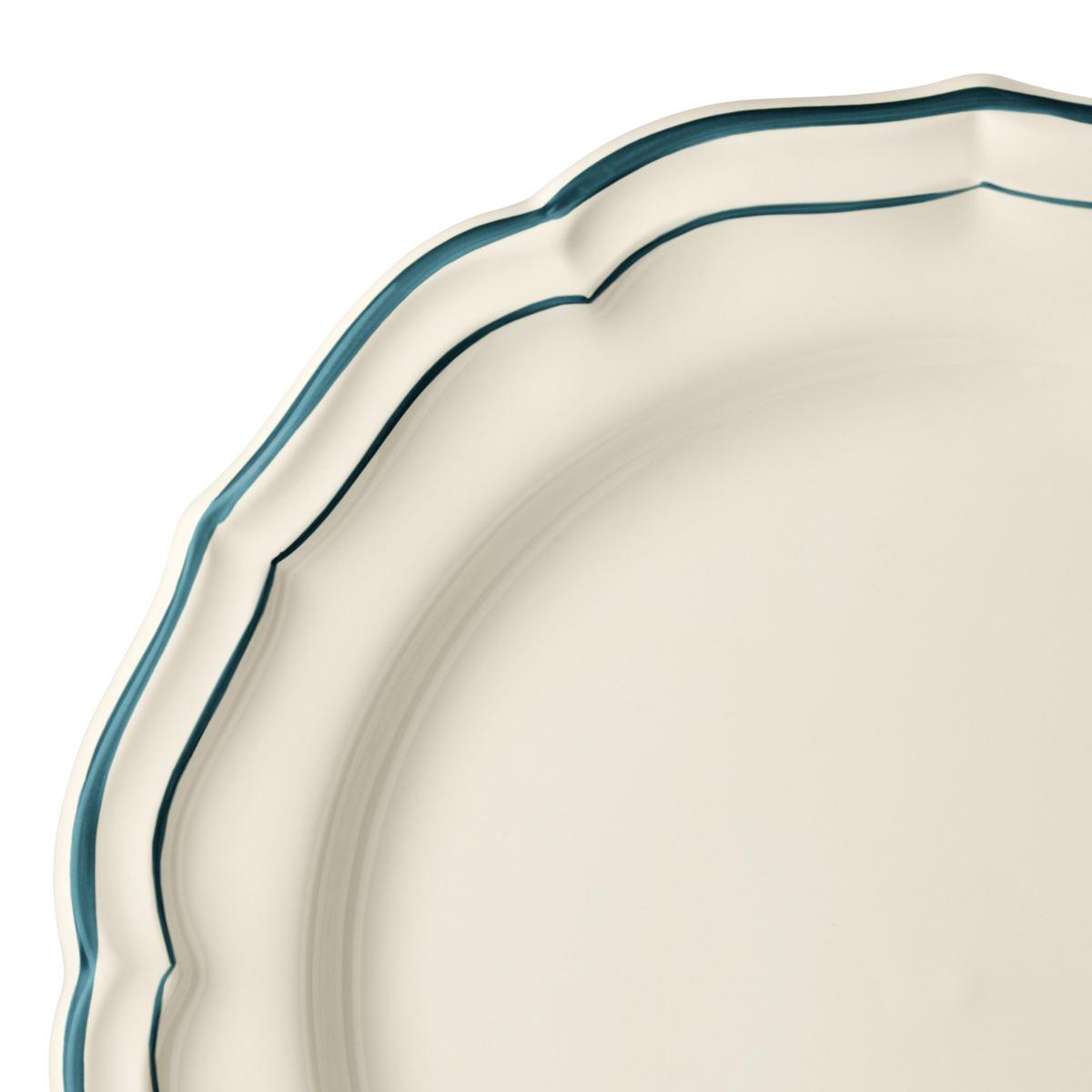 As a solitaire, the simple and elegant "Filets Acapulco" dinnerware matches a classic interior as well as an ambience in country house style. With its bright peacock-coloured rim, the Gien dinner service is also perfect for a summer table in maritime style.