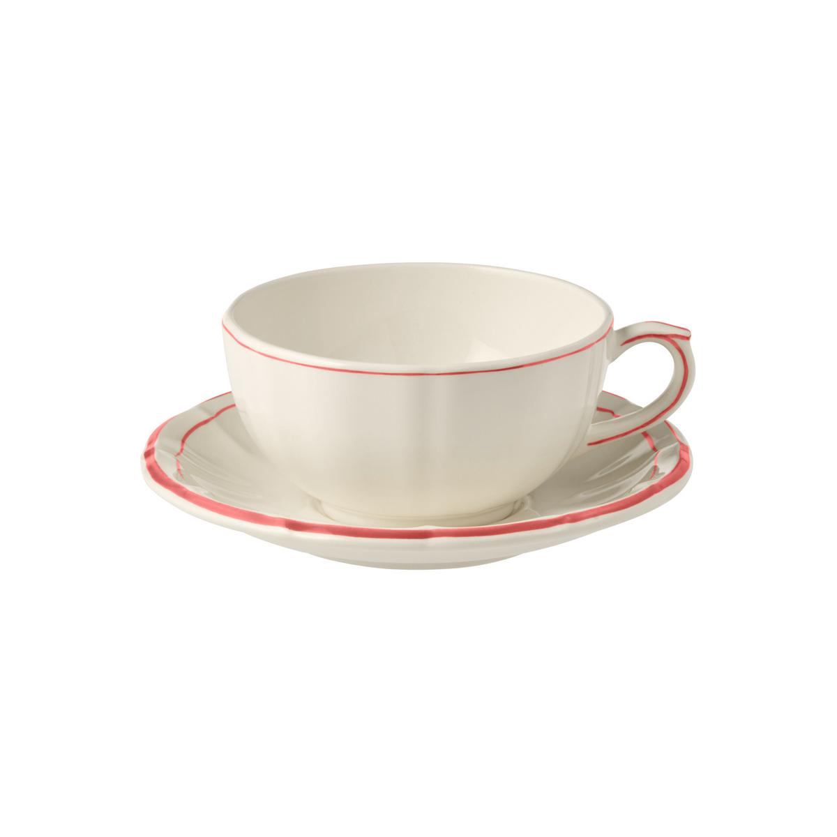 "Filets Corail" "café au lait" cups and saucers, set of 2 by Gien