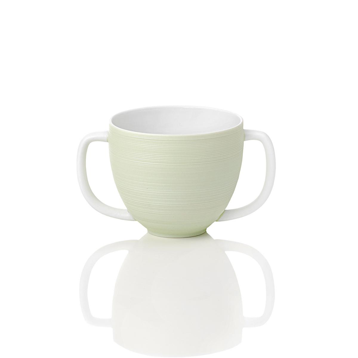 The "Hémisphère Baby" collection by J.L Coquet, like the entire "Hémisphère" dinnerware, is distinguished by their extra-wide, delicately structured edges. The velvety surface is not only visually attractive, but also a beautiful haptic experience. Available in three shades, both soft and pearly, this collection will be an ideal and memorable birth gift for parents and children to keep throughout their lives.