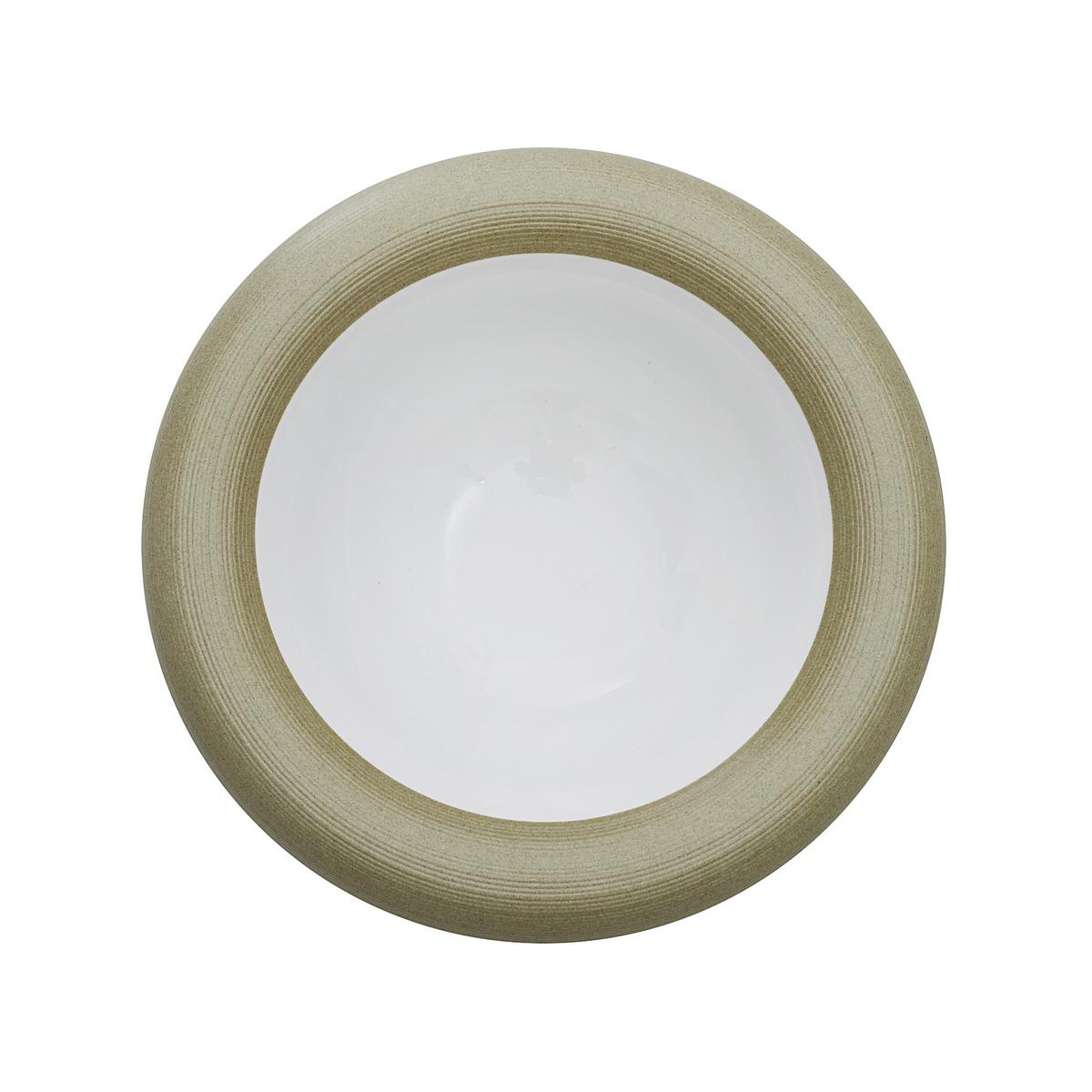 In the final stage of production, all plates are given a satin finish on the extra-wide, delicately structured edges. This finish is applied with a brush. The plates are then fired again at high temperatures. This creates the velvety surface structure, which is also a haptic experience.