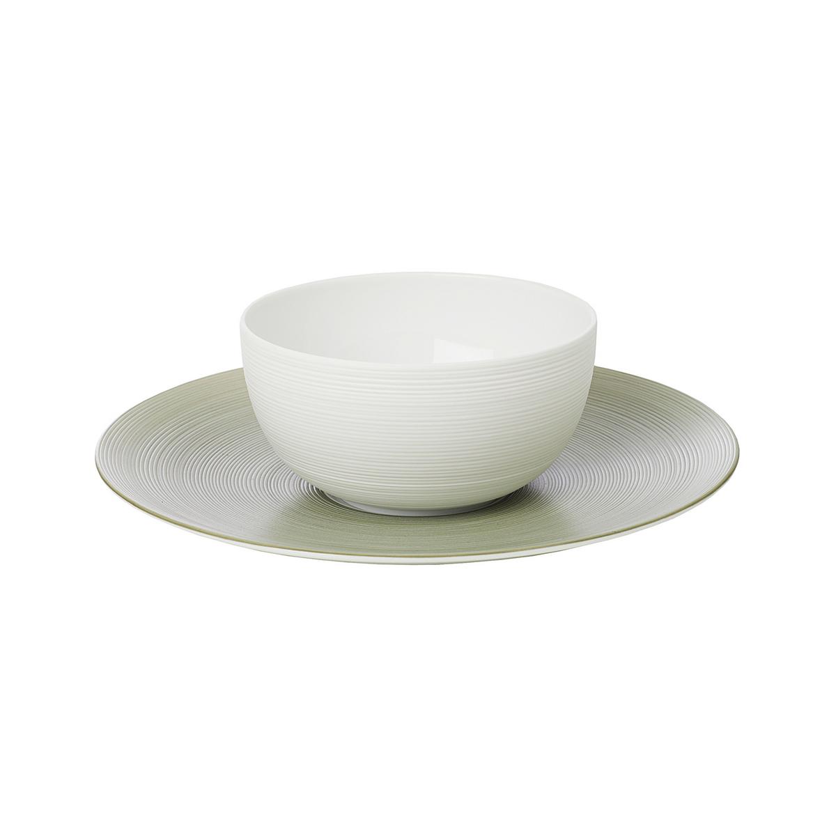 Each piece of the handcrafted crockery stands for French craftsmanship that is rarely found today. At least 15 different steps are required to make a single piece from J.L Coquet's "Hémisphère Kaki-Green" series.