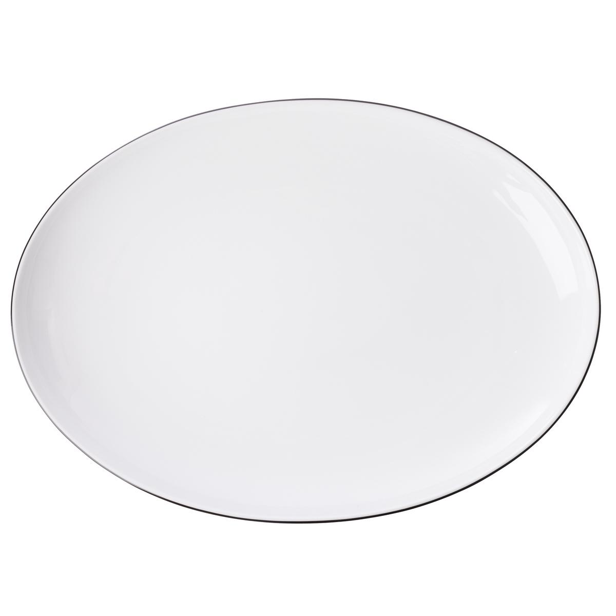 The white "Urbino Canto" dinner service from KPM has been refined with a black, hand-painted rim. The fine colour line is quick fired at around 1300° C, which makes the porcelain suitable for the dishwasher.