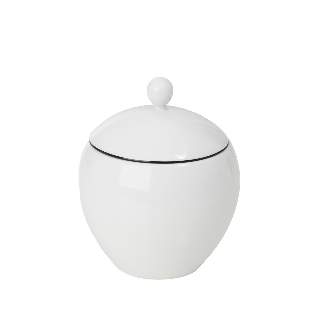 The white "Urbino Canto" dinner service from KPM has been refined with a black, hand-painted rim. The fine colour line is quick fired at around 1300° C, which makes the porcelain suitable for the dishwasher.