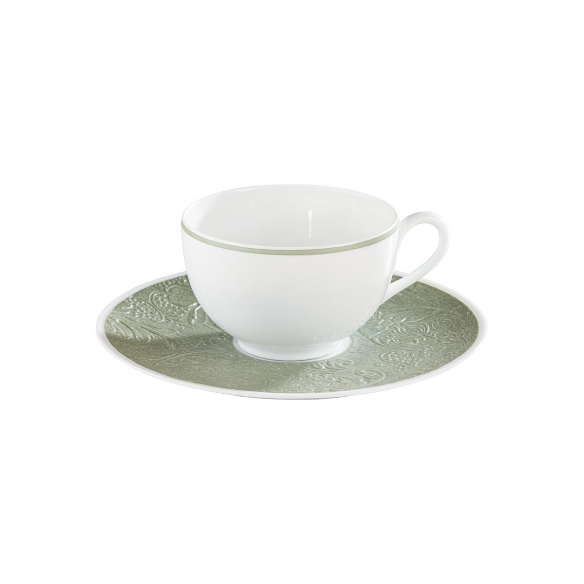 Raynaud's "Italian Renaissance" collection is adorned with a rich floral decor. This decor is inspired by wall coverings from the 19th century, with which the most famous residences and noble houses, for example, the Buckingham Palace, were decorated. Raynaud collaborated with the English brand Lincrusta®, renowned since 1877 for its incredible wall coverings with opulent and deep embossing.