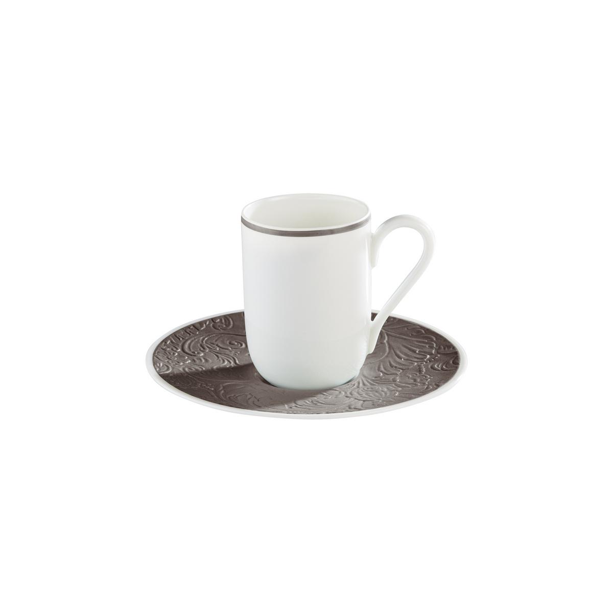 "Italian Renaissance Dark Grey" double espresso cup and saucer by Raynaud
