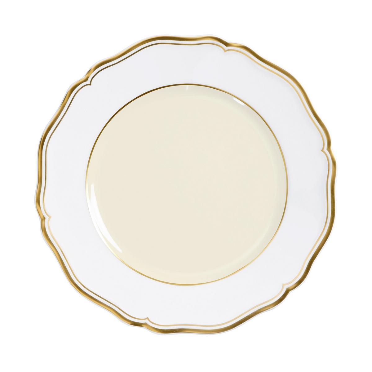 "Mazurka" by Raynaud is based on a traditional shape dating back to the time of Louis XV. The curved and gilded edges enhance the high-quality Limoges porcelain in a royal way. The gold rims are applied to the individual pieces by hand.