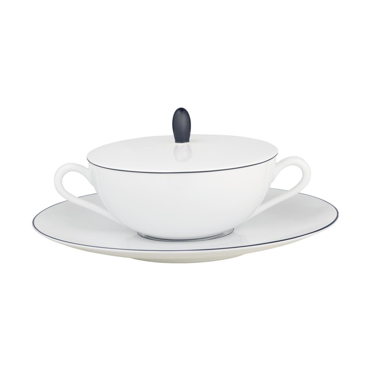 "Monceau Black" soup cup and saucer with lid by Raynaud