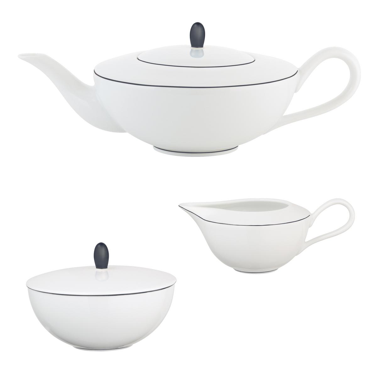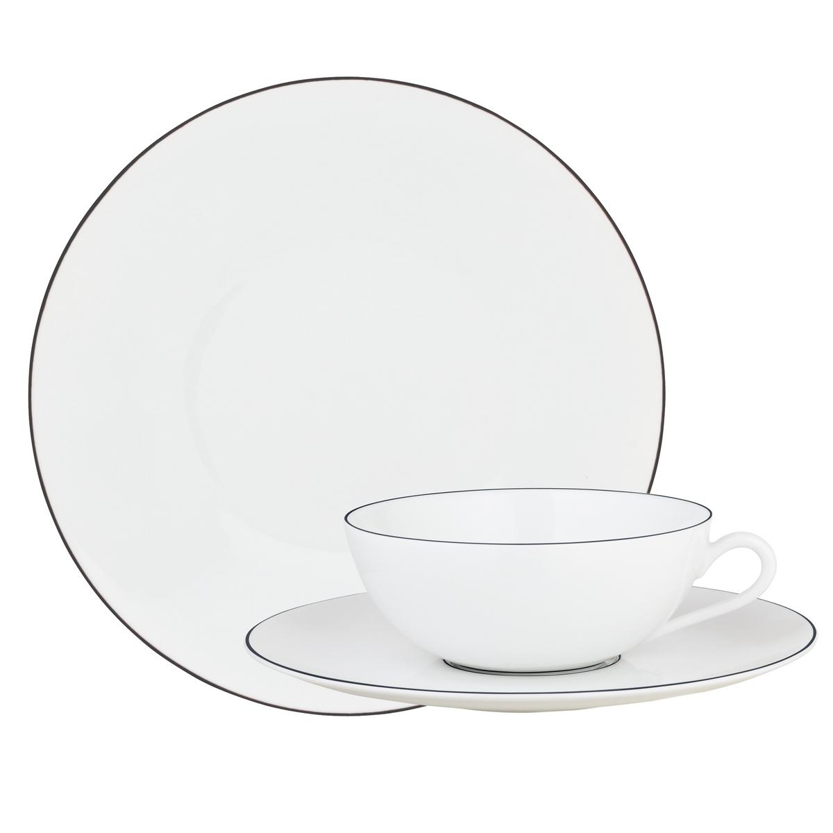 The "Monceau Black" porcelain dinner service from Raynaud shows all the grace of a ballerina. The basic shapes of the plates and cups are pure, while the handles, spouts and knobs display graceful curves. Every piece of the "Monceau Black" dinner service from Raynaud is encircled in a fine black line, which emphasises the elegant contours and goes very well with other dinner services from Raynaud.