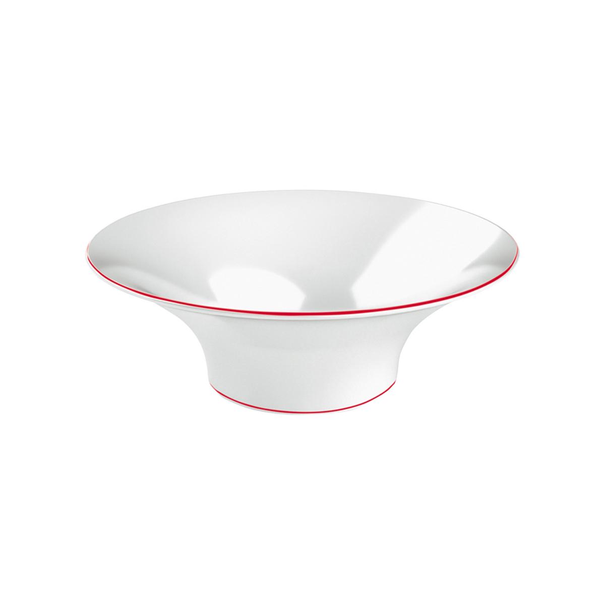 The "Monceau Red" porcelain dinner service from Raynaud shows all the grace of a ballerina. The basic shapes of the plates and cups are pure, while the handles, spouts and knobs display graceful curves. Every piece of the "Monceau Red" dinner service from Raynaud is encircled in a fine red line, which emphasises the elegant contours. The red used is equally refined, a shade somewhere between crimson and carmine, and it goes very well with other dinner services from Raynaud.