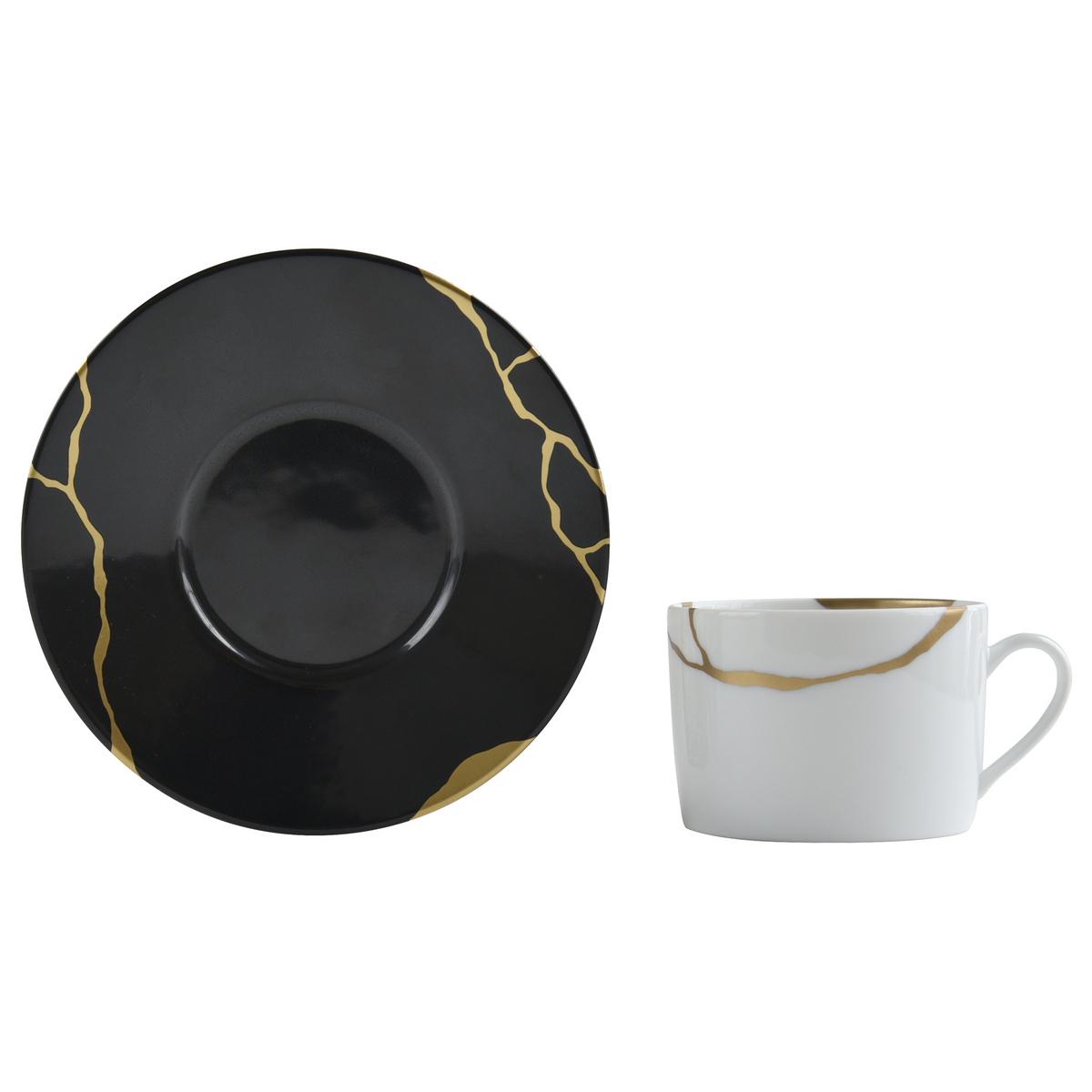"Kintsugi Coal Black" tea cup and saucer by Bernardaud