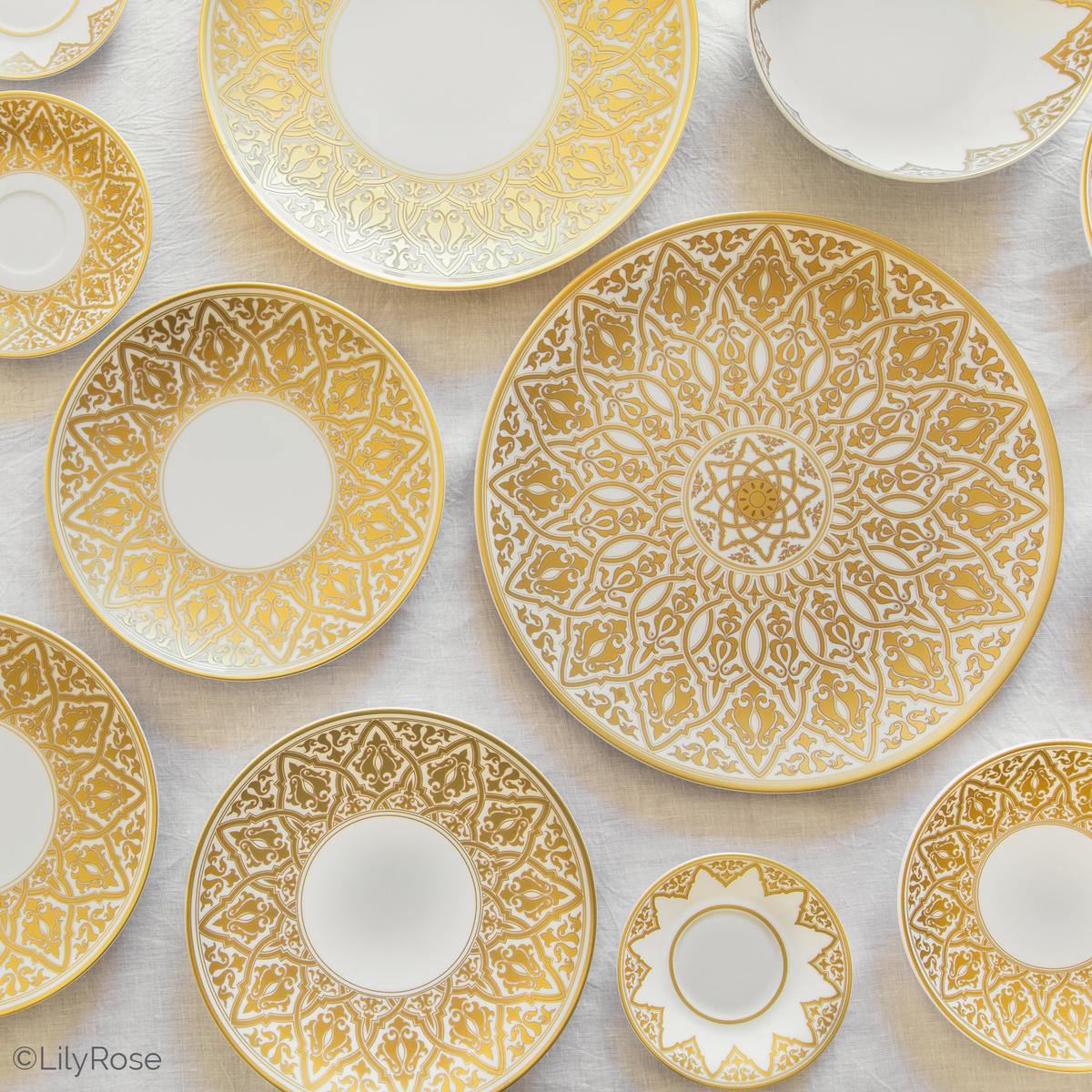 Pieces with gold, silver, or platinum decoration: not suitable for the microwave, as Bernardaud uses a high percentage of precious metals in these designs.