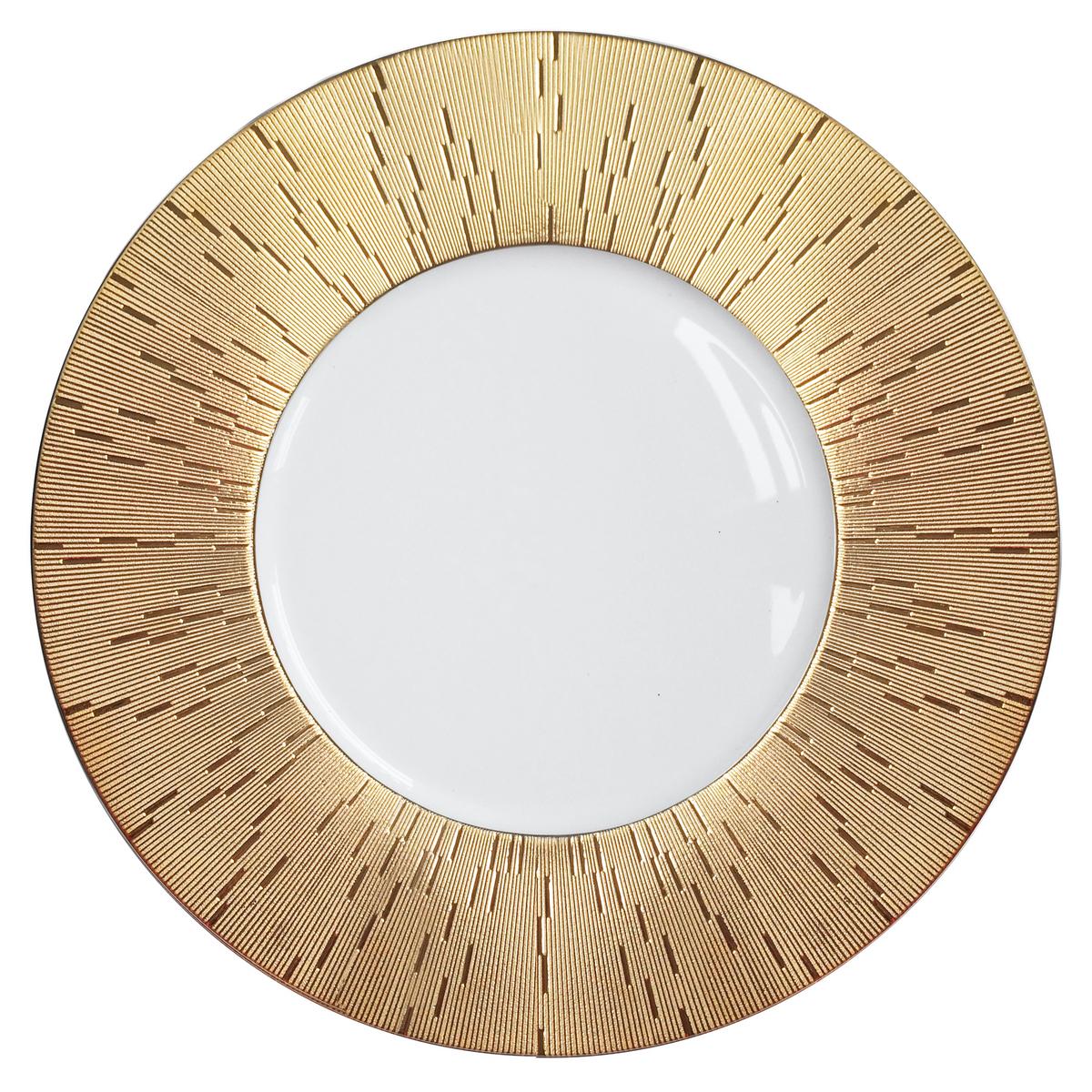 Limoges porcelain from Haviland stands for perfect craftsmanship, and you will find it impossible to resist running your fingers over this gorgeous "Infini" dinnerware line. All of the "Infini" plates by Haviland have a radial relief pattern, which is "engraved" into the Limoges porcelain. Precious gold refinement on the rim of the plates add a distinctive air of sophistication to this exclusive porcelain making it particularly eye-catching. Each plate from Haviland is a unique piece, exclusively shaped and worked by hand.