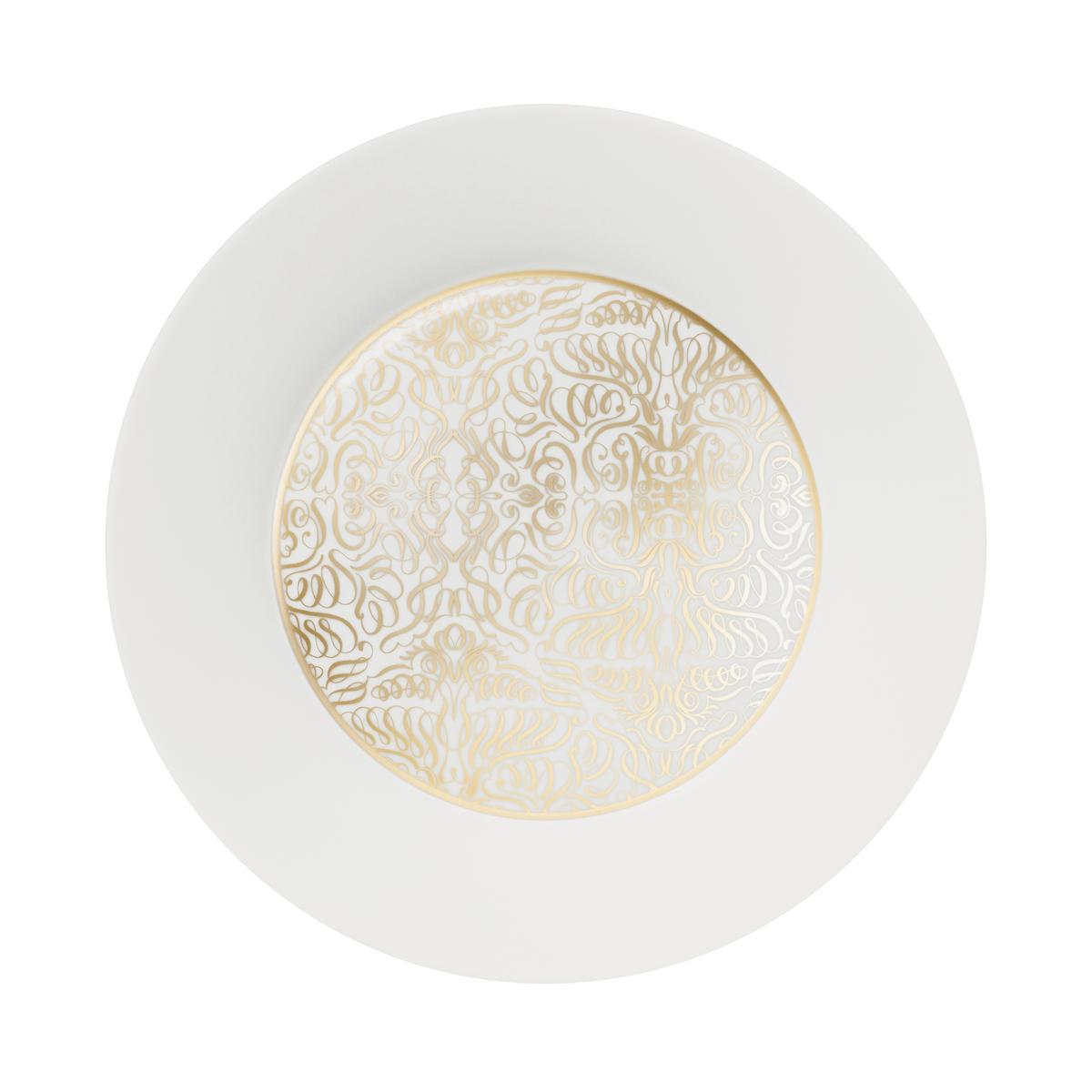 All three dinner services bring together finely polished bisque porcelain and Oriental ornaments in gold and cobalt blue. The design for "Alif" is the brainchild of the company founder Stefanie Hering and has very symbolic features. "Alif Blue" and "Alif Gold" are distinguished by their fine Paisley pattern. This droplet-shaped motif is used by some cultures as a protective charm. "Alif Blue-Green" shows a labyrinth that is also supposed to ward off evil. In the centre of the labyrinth there is a symbol of eternal, unconditional love – the Dianthus.