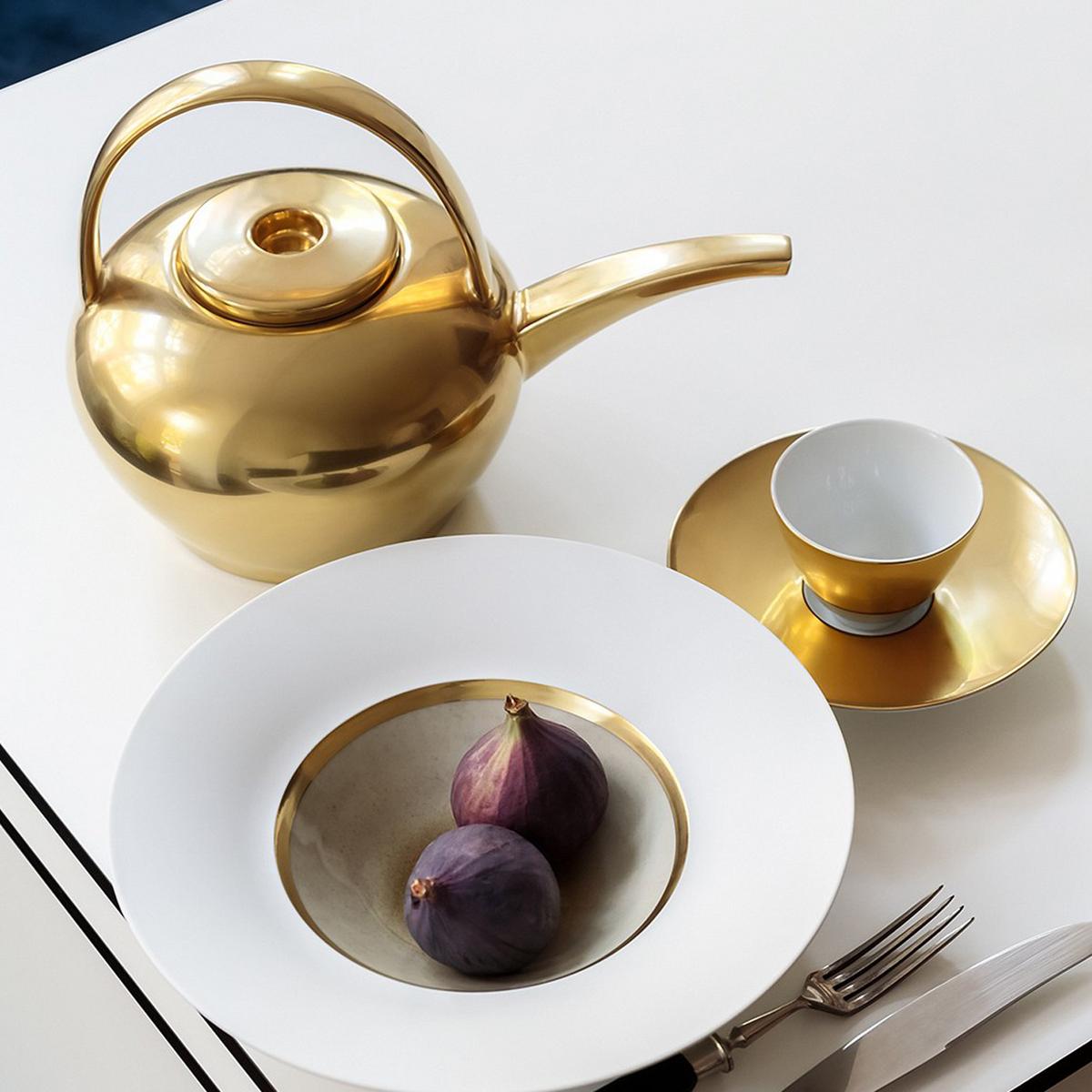 For over a decade Hering Berlin has continued to surprise us with innovative and attractive porcelain creations. The designers from the Berlin manufactory know how to take traditional material and find ever new designs. “Polite” is a dinner service made of delicate white porcelain, decorated with a broad gold rim and a fine brown line.