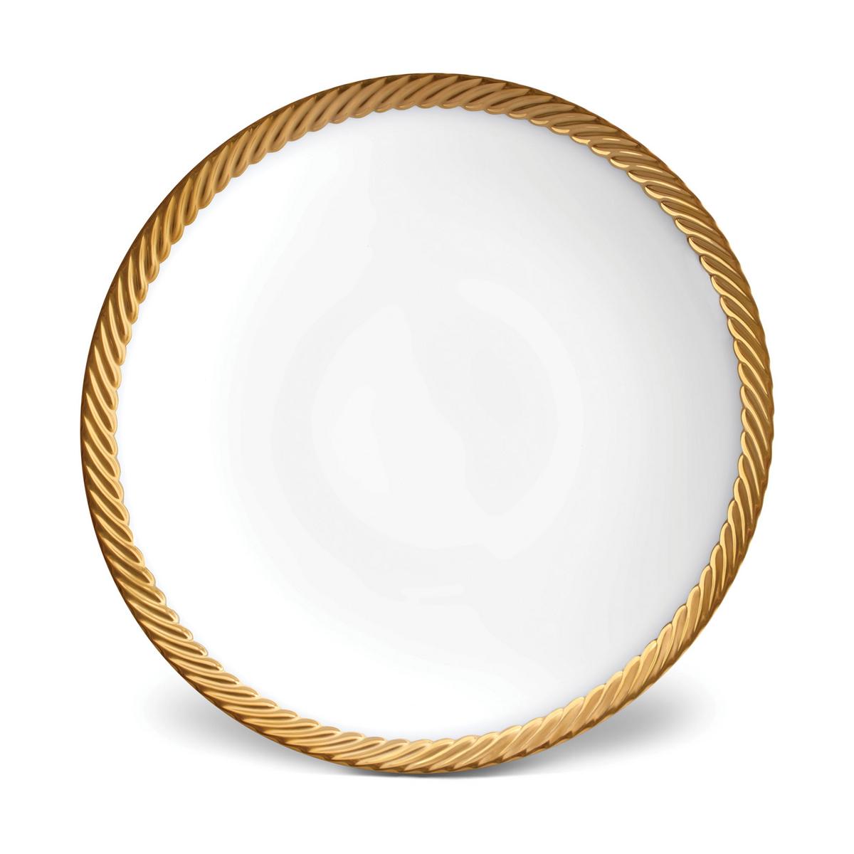 The 24-carat gold edge gives the otherwise rather simple "Corde" dinnerware by L'Objet a sensational elegance.