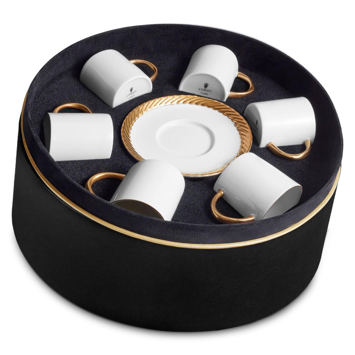 "Corde Gold" espresso cups and saucer, set of 6 by L'Objet