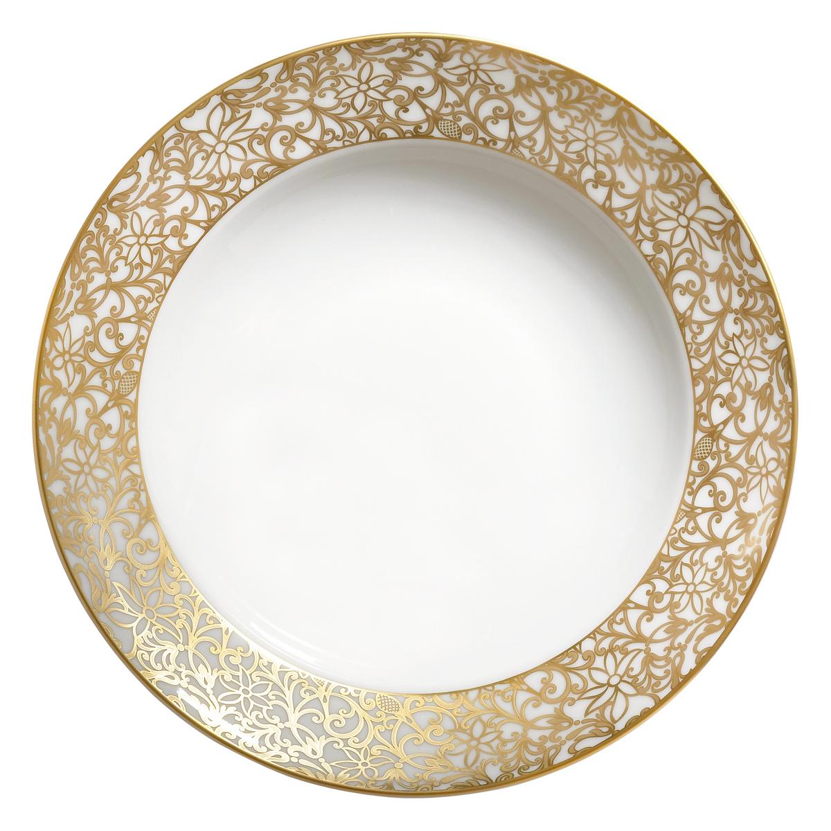 Spiral designs of leaves, tendrils and flowers are artistically intertwined on plates, bowls, jugs and pots. Intricate twists and twirls of gold wind their meandering designs against the soft white background of Limoges porcelain.