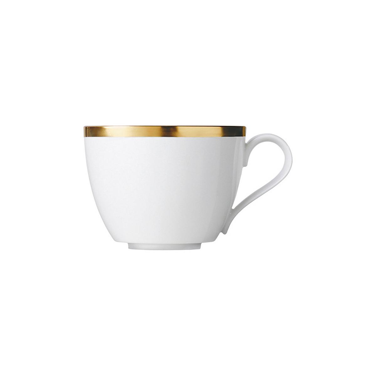 The pure gold highlights the luxurious appearance of the white porcelain and demonstrates its purity in a way that was not obvious until now. Each piece of the dinner service has its own unique appearance: either by providing a flat, mirror-like surface or adding a line around the rim, the decoration enhances the special character and shape of each individual item.