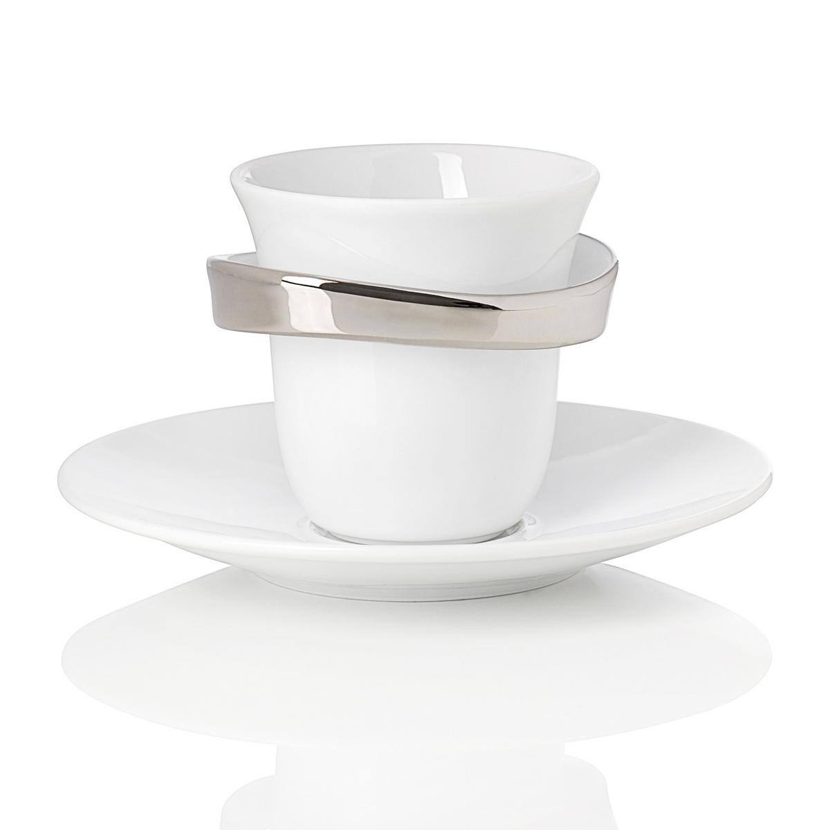 A design by Sylvain Dubuisson for Bernardaud: the "Anno" espresso cups and saucers are made of Limoges porcelain and are available with a platinum-plated or gilded ring. They are delivered as a set of 2 in a beautiful gift box.