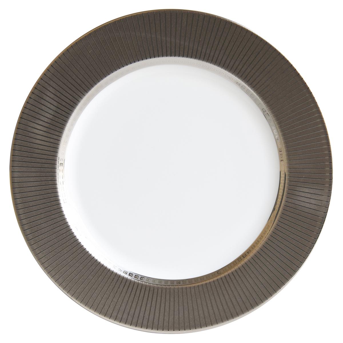 Bernardaud’s "Athena Platinum" dinnerware is made of wonderfully white Limoges porcelain, and the rim of the plates is adorned with a platinum motif. This filigree platinum refinement displays a graphic design in the form of varying sized squares. Very finely done, the platinum plating of "Athena Platinum" also plays with matt and shiny contrasts. "Athena Studio" completes the collection and combines elegant stripes with squares.