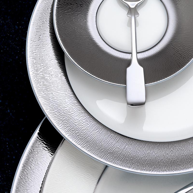 Pieces with gold, silver, or platinum decoration: not suitable for the microwave, as Bernardaud uses a high percentage of precious metals in these designs.