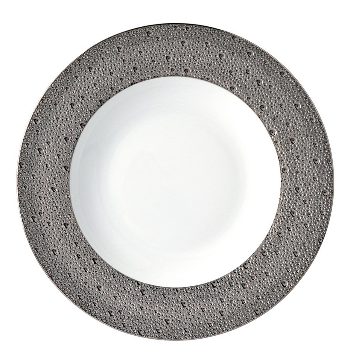 "Ecume Platinum" deep plate with rim, large by Bernardaud