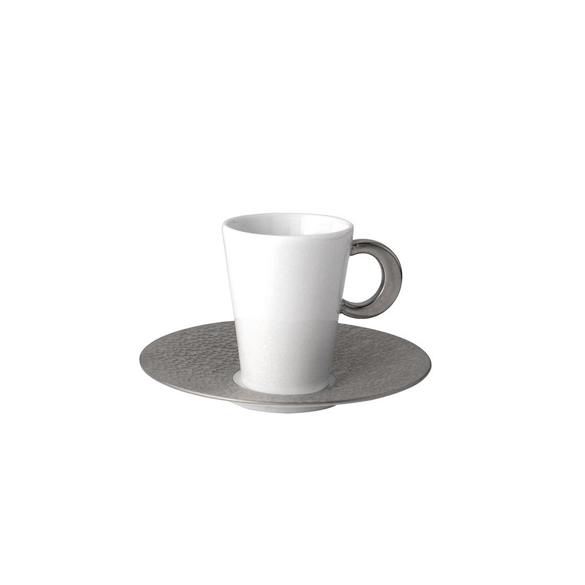 "Ecume Platinum" single espresso cup and saucer by Bernardaud